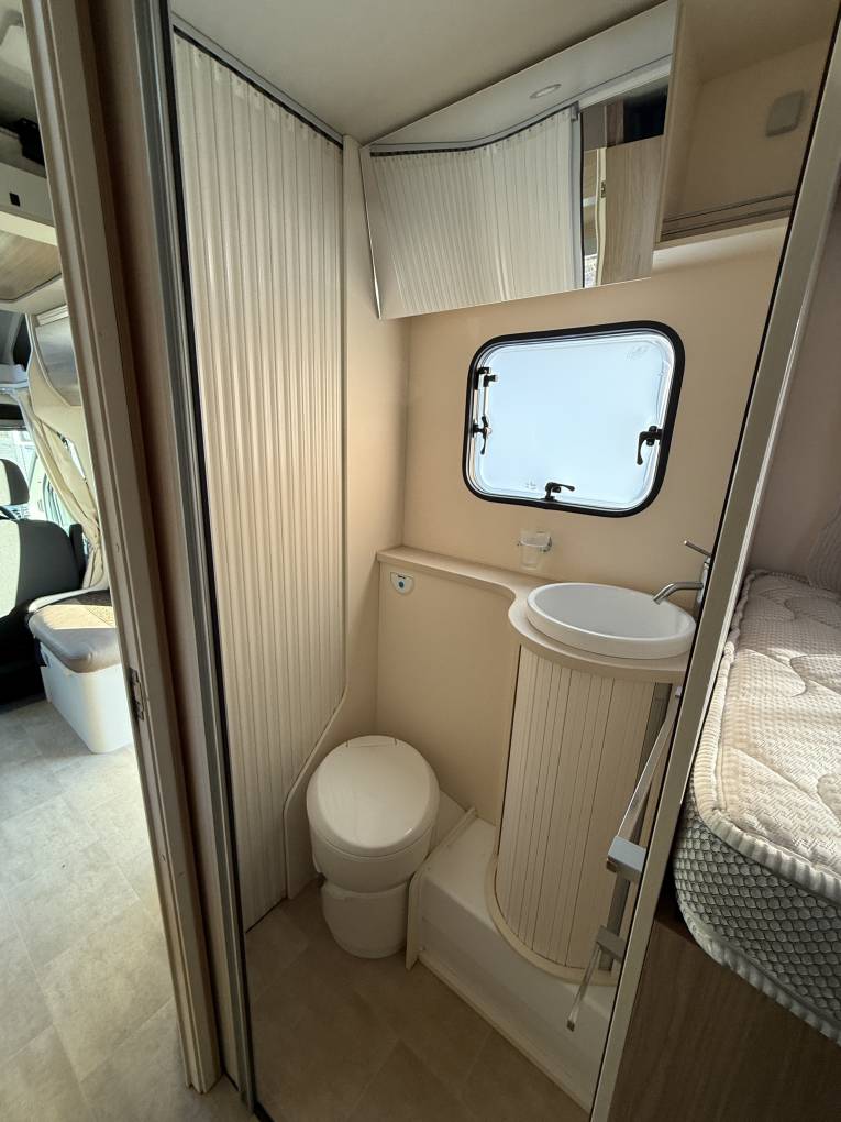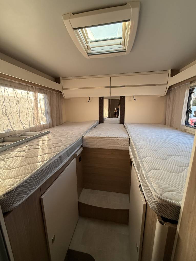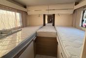 In the centre of this cleverly designed Rimor is a split washroom with nearside shower cubicle and opposite a washbasin and cassette toilet.. doubling up as en-suite facilities. The rear bedroom area has fixed twin beds with a middle infill, overhead lockers and large storage cupboards below. Externally you will find a wind out awning and reverse camera and double opening access to the rear garage, this has the additional rear jack legs for stability and a whole host of factory fitted extras lifting it above the crowd in this competitive sector listed below.