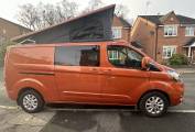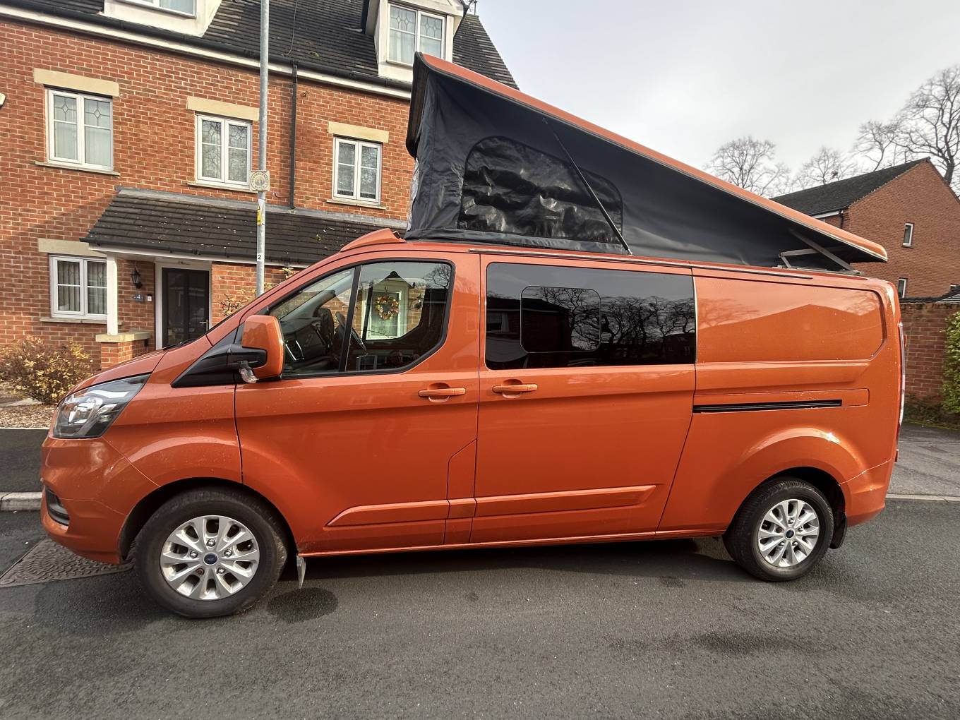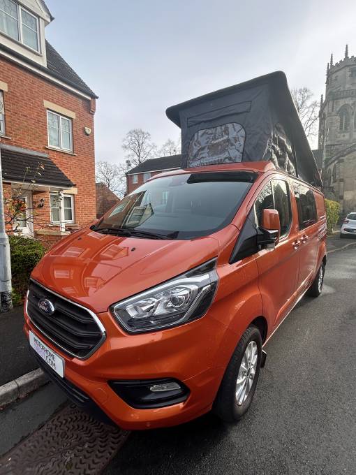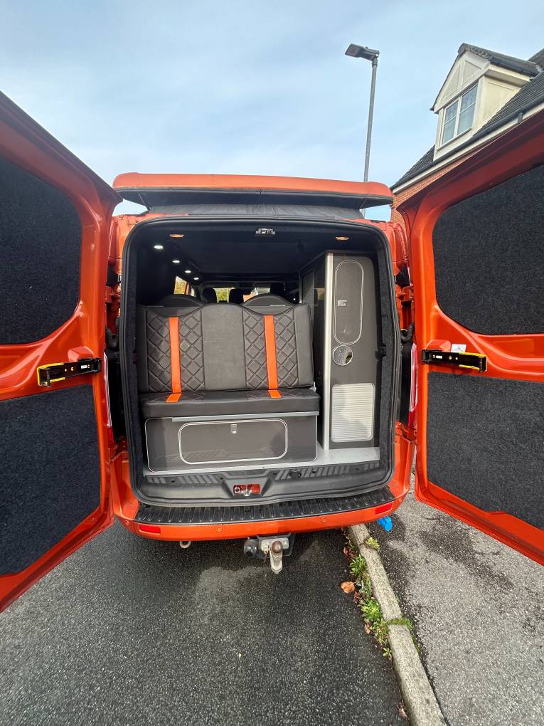 Here we have a Ford Transit custom conversion, with just 20000 miles on the clock, one owner, just had a full service and MOT Aug 2025. This motorhome really stands out with its bright orange paintwork, the interior orange seat designed to match just finishes it off nice. It has 5 seat belts and can sleep 4 with its rock and roll bed and pop up top, The cab has a Sat nav, cruise control, blue tooth and a tracker system fitted, The kitchen has a gas hob, fridge and sink with mixer tap and a removable table, there is plenty of storage at the back and under the bed. It has a tow bar fitted and external charging point. This can be viewed by appointment only in Pontefract.