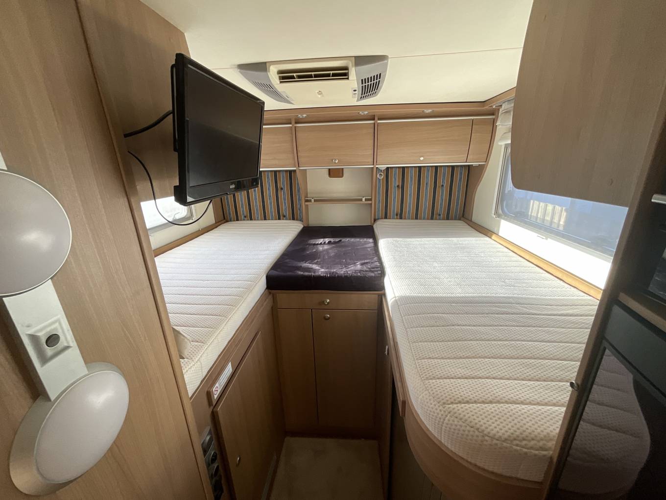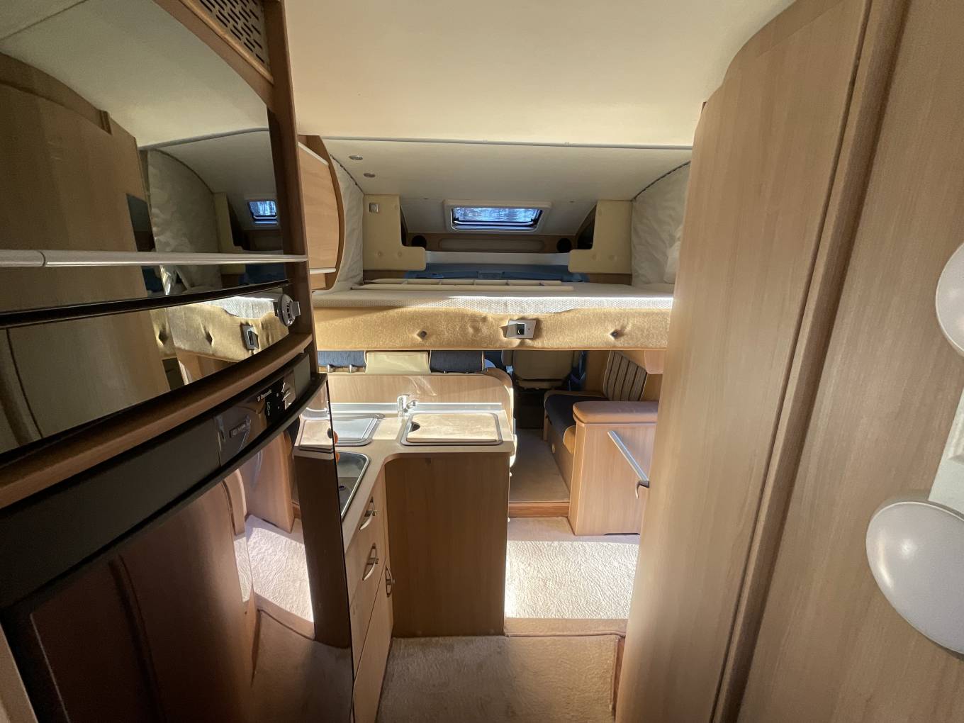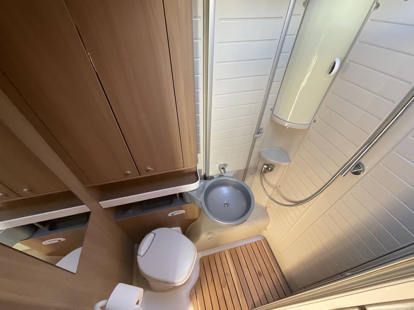 The Burstner IT276 is the perfect motorhome for sleeping. It has an end bedroom with 2 single fixed beds that can be made into one large double bed if preferred. It also has a large double electronic drop down bed in the centre of motorhome that has hardly been used. The motorhome comes with a good sized washroom featuring a Thetford Flush cassette toilet, sink and shower with separating screen. It has heating and hotwater supplied through the Truma combi boiler system.