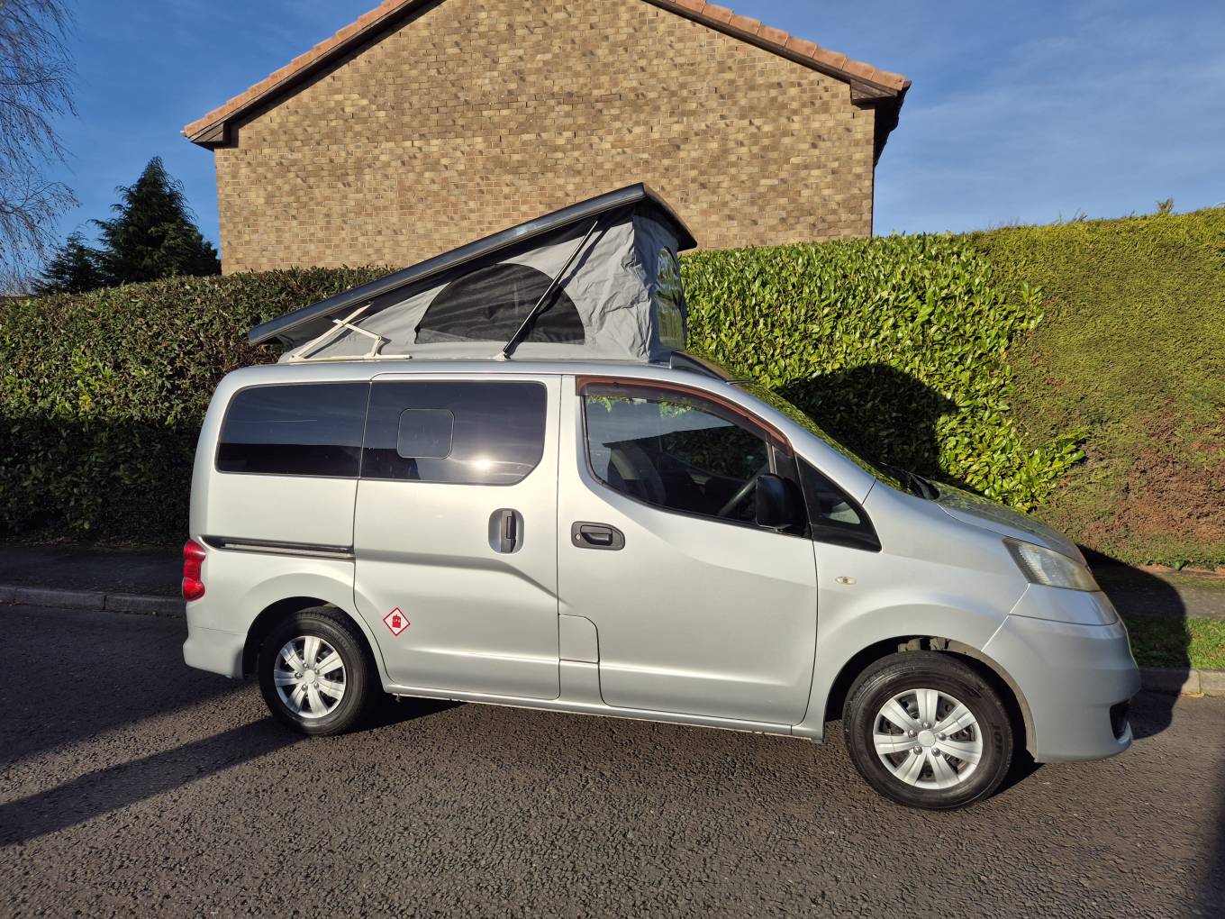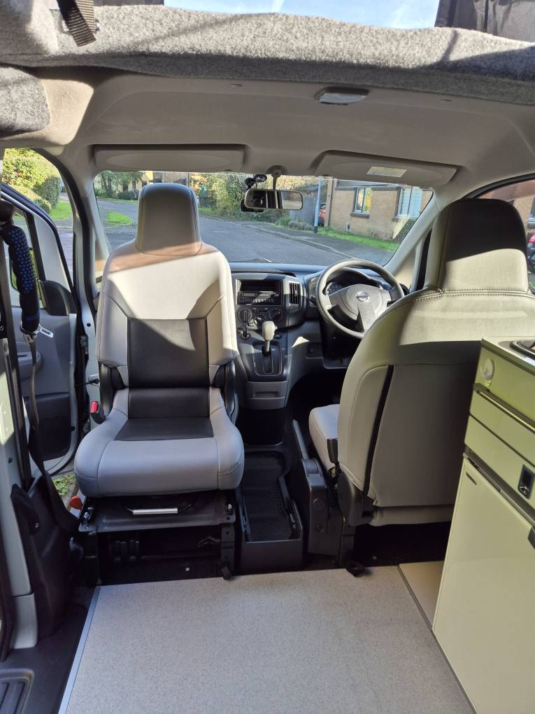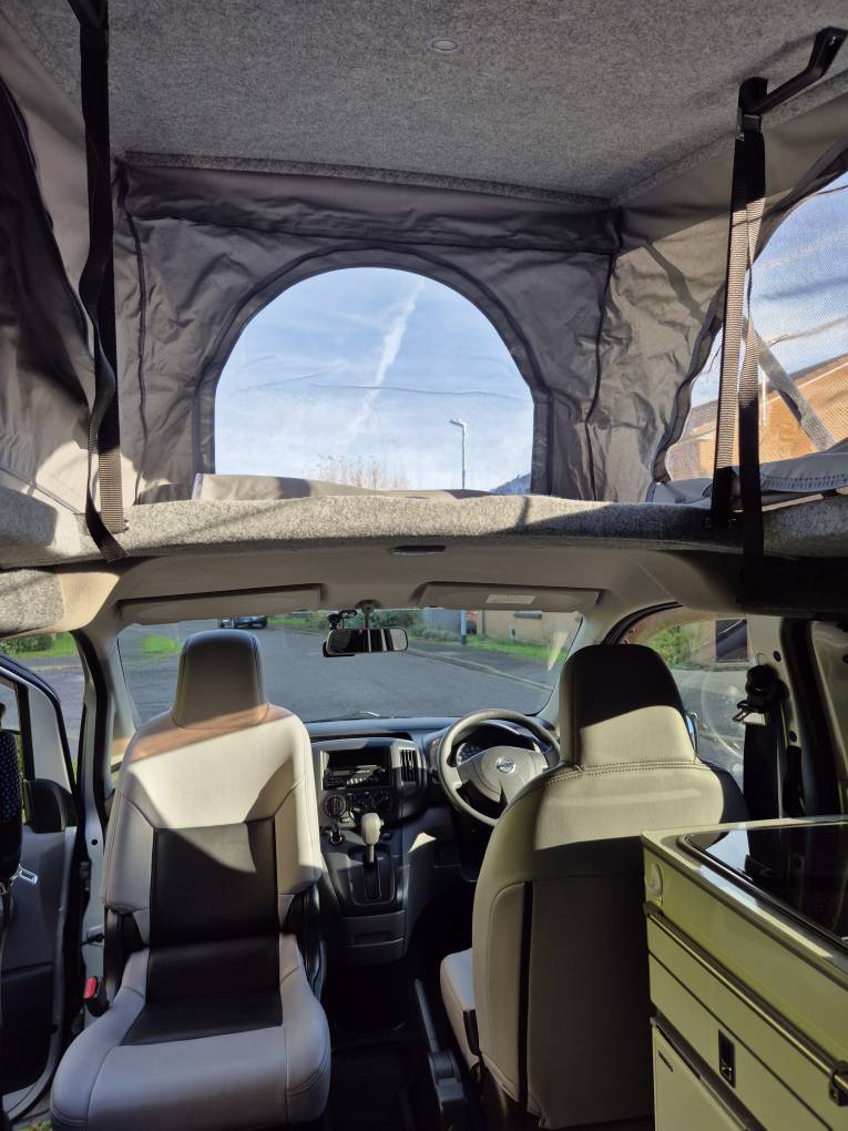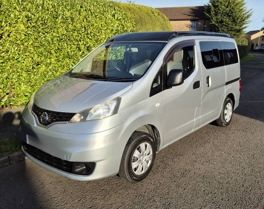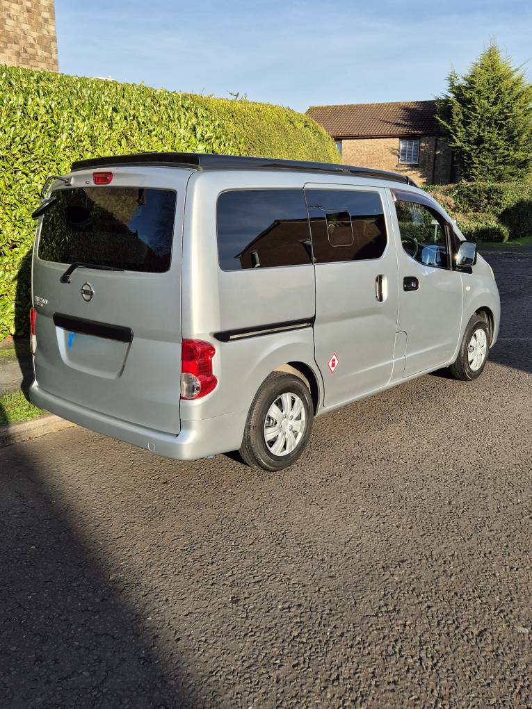 2011 Nissan NV200 campervan ,Electric rock & roll bed + swivel front seat + awning rail + fridge + hob/sink + 240v hookup + Cupboards & storage with elevated poptop + Solar panel for off grid camping, carrys 4 people (option to sleep 4 people as you can purchase a conversion for overcab sleeping) and very spacious & practical considering their size. The length & width is the size of a medium estate CAR. The layout design is Versatile, Compact and a Practical way of owning a camper van for all those occasion at anytime of the season. You can take these compact campers and go wherever you desire to stay, whether its for the day out or a week(s) away, taking in the best views & sites as there's no parking place to where these compact & versatile campers cannot be parked. Their popularity lies in there size and running costs and the ability to access areas other campers cannot, like narrow lanes, parking bays, driveways... etc.. It is so practical that this could even be your everyday vehicle going to and from work, doing the shopping, working away on contract, fishing, family fun days out...etc. Further practical uses like laying down the rear seat into bed form, which gives you even more space in the rear and underneath for those other practicality uses for transporting large items, making these campervans more versatile than most vehicles of its size.