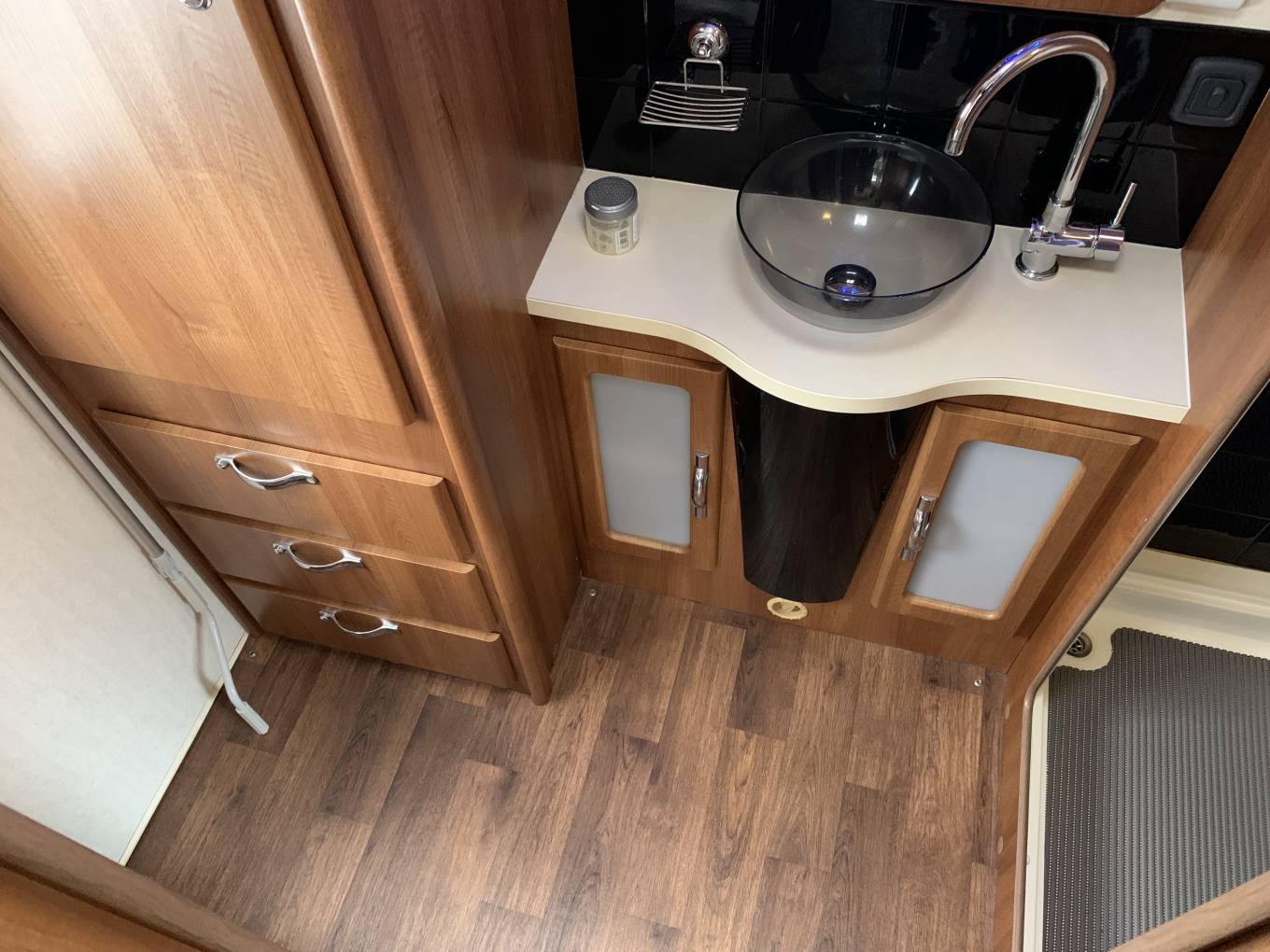 basin and large wardrobe with drawers below.