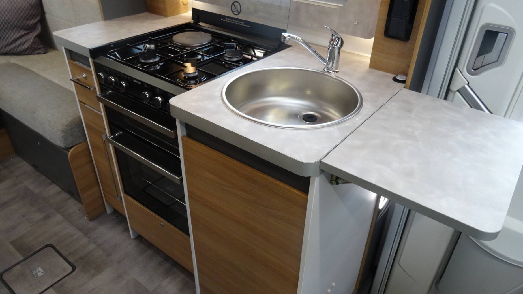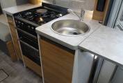 oven and grill, hob with 3 gas burners and an electric plate and a sink with an