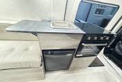 van we have the kitchen area with a Thetford 3 ring gas hob and oven/grill,