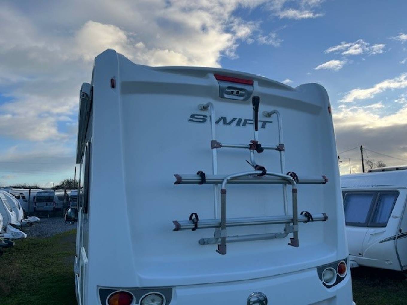 Spec includes, 2 x New Leisure Batteries, 2 x Travelling Seat Belts, Wind Out Awning, Cab Aircon, Swivel Cab Seats, Truma Heating and Hot Water System, Aerial, Bike Rack, Cab Blinds, Blinds and Fly Screens Throughout, Full Set of Carpets, Spare Wheel, Radio, Alarm, Electric Step, Rear Locker Space can be accessed Externally or Internally by Lifting the Bed, Gas Bottle, Table, More than Ample Space Throughout. Other Extras Included.