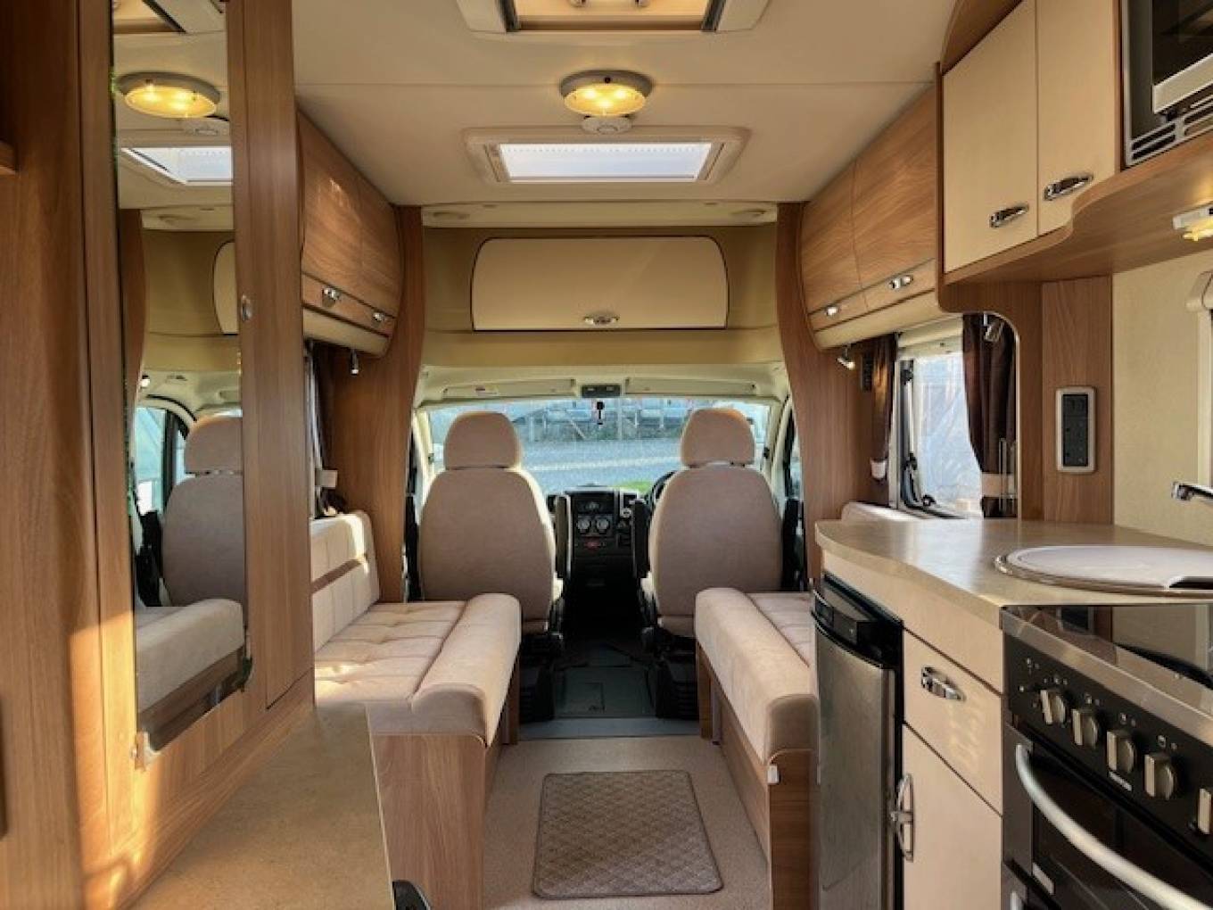 Sleeping is via the Rear French Double Bed Bed with Luxury Mattress. There is a further Double which can be made by combining the two front Bench Seats