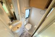 Adjacent to the kitchen, you’ll find a spacious wardrobe and a washroom featuring a cassette toilet, hand wash basin, and shower cubicle.
