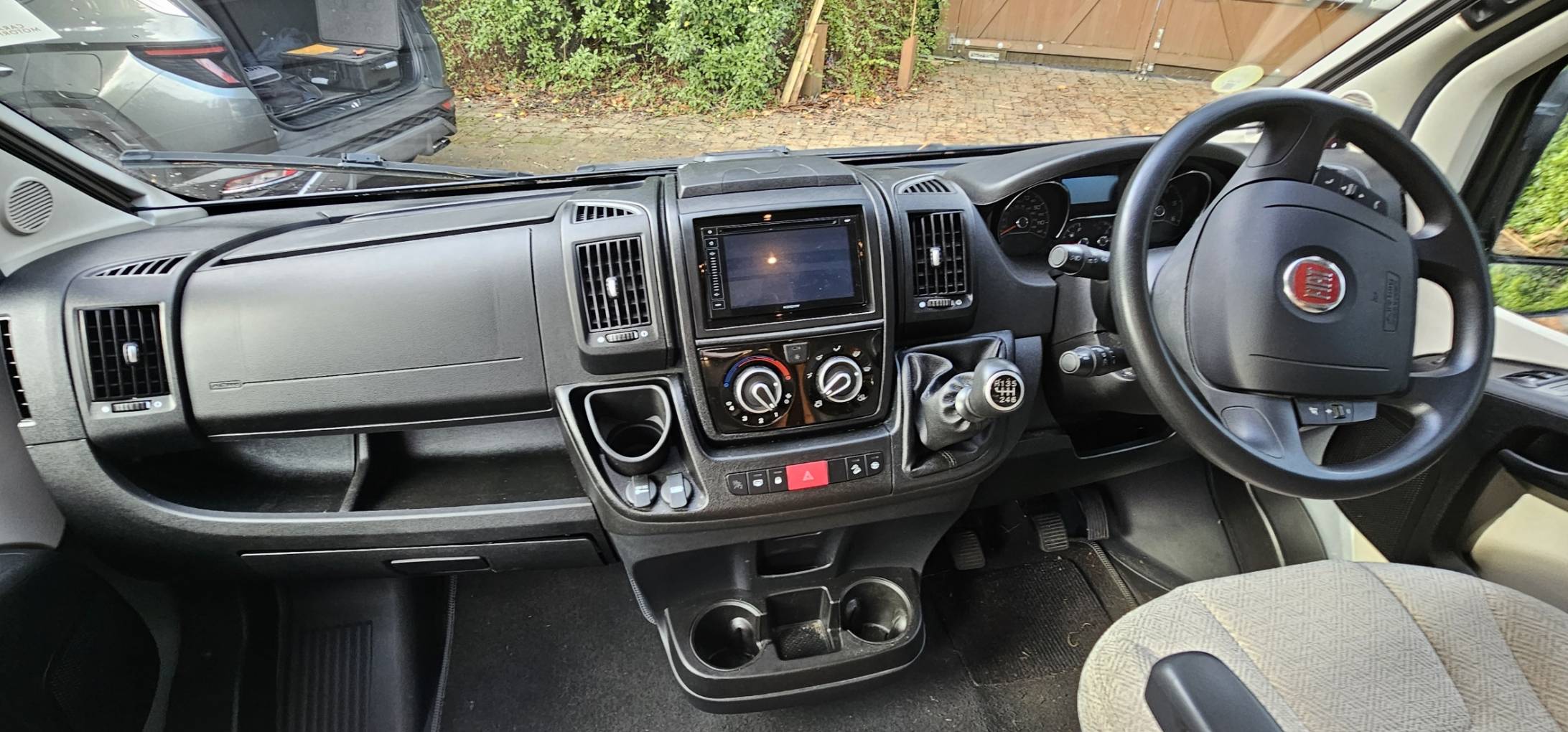 This top of the range campervan has a solar panel & the on-board refillable Gas-It system, meaning no more heavy lifting, simply refill at a fuel station which sells LPG. There's also an awning creating extra space outside, electrically operated step to assist you easily getting in & out. The living area benefits from convenient USB ports to charge your portable devices, plush carpets, black-out blinds for a great night's sleep & Grade 3 Truma iNet heating & thermal insulation (the highest standard achievable for motorhomes). It’s also been fitted with full media radio CD system in the cab with integrated reversing camera and SATNAV.