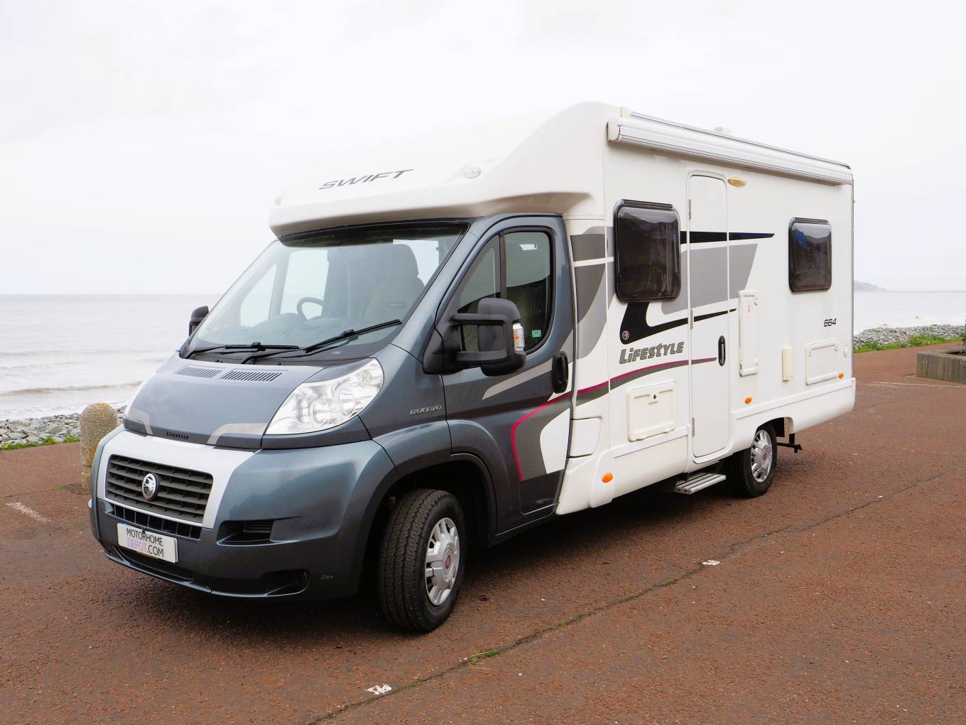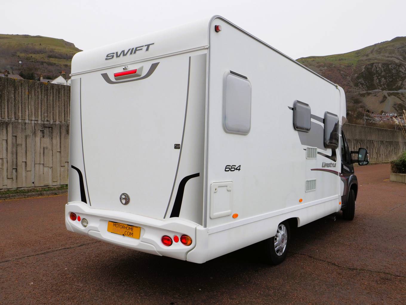 Motorhome Depot Wrexham & Gwynedd are delighted to be able to offer this low mileage 4 berth/4 belt motorhome from Swift. The Lifestyle 664 is a spacious and comfortable place to relax with a large rear fixed french bed and private rear washroom, central kitchen and a good sized lounge/dinette to the front. The 664 is 6.72m long and weighs in at 3500Kg so can be driven on a standard UK licence. A generous payload of 575Kg and good storage on board gives plenty of allowance for an adventurous couple or family of up to 4 to get away and travel the world.