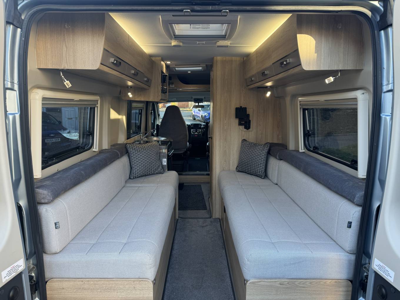 These vehicles are becoming more and more popular and it's very easy to see why as they offer very comfortable accommodation, excellent facilities and easy manoeuvrability making them ideal for everyday use. This Elddis is a two berth motorhome fitted with two travelling seat belts. Up front you have a 2.3 litre engine with an excellent manual 6 speed gearbox, cruise control, a reversing camera, cab air conditioning, sat nav, driver and passenger airbags, steering wheel mounted controls, USB charging point and much more.