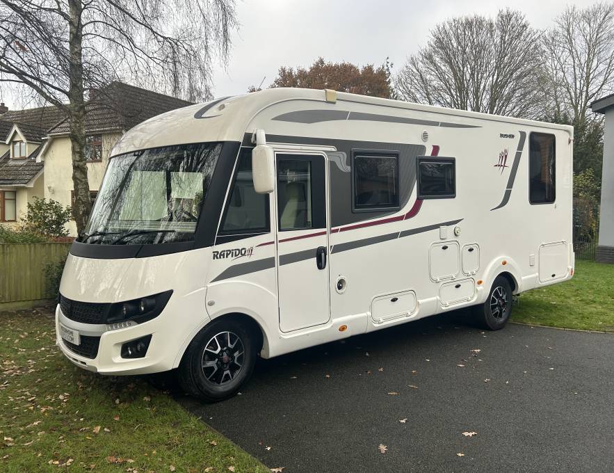 This Rapido has the excellent 9-speed automatic gearbox and an economical 2.3l engine making it very easy to drive. It has cab air conditioning, cruise control, reversing camera and a Kenwood media system with Sat Nav. The engine is Euro 6 making it ULEZ compliant and allowing you to access a number of the clean air cities without additional charges.
