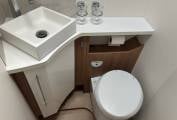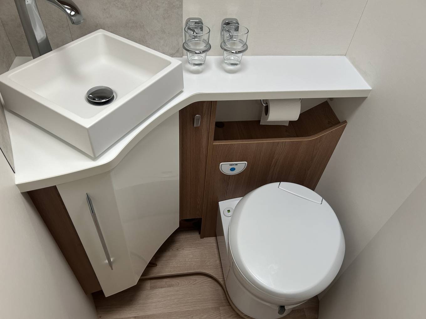 The 8094DF is extremely comfortable to sleep in with a large pull down bed at the front of the motorhome. The rear lounge also coverts into a second large double bed. There is a good sized washroom that is accessible from either side of the motorhome, this includes a Thetford flush cassette toilet and sink on one side and a separate shower on the other. Heating and hot water is provided by the easy to use Truma I-Net system.