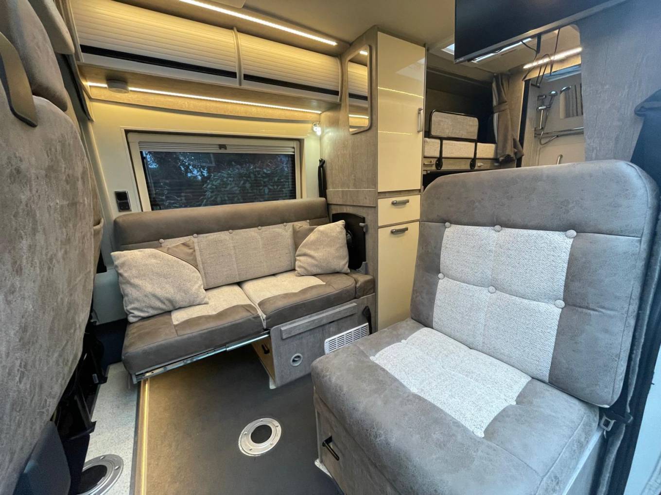 the road with 5 travel seats, swivel captains chairs, cab air conditioning,
