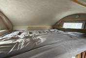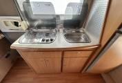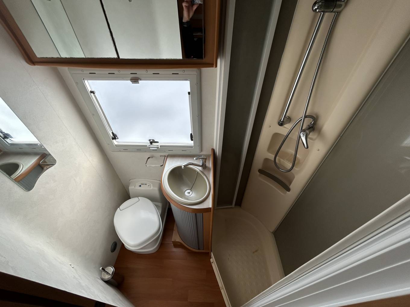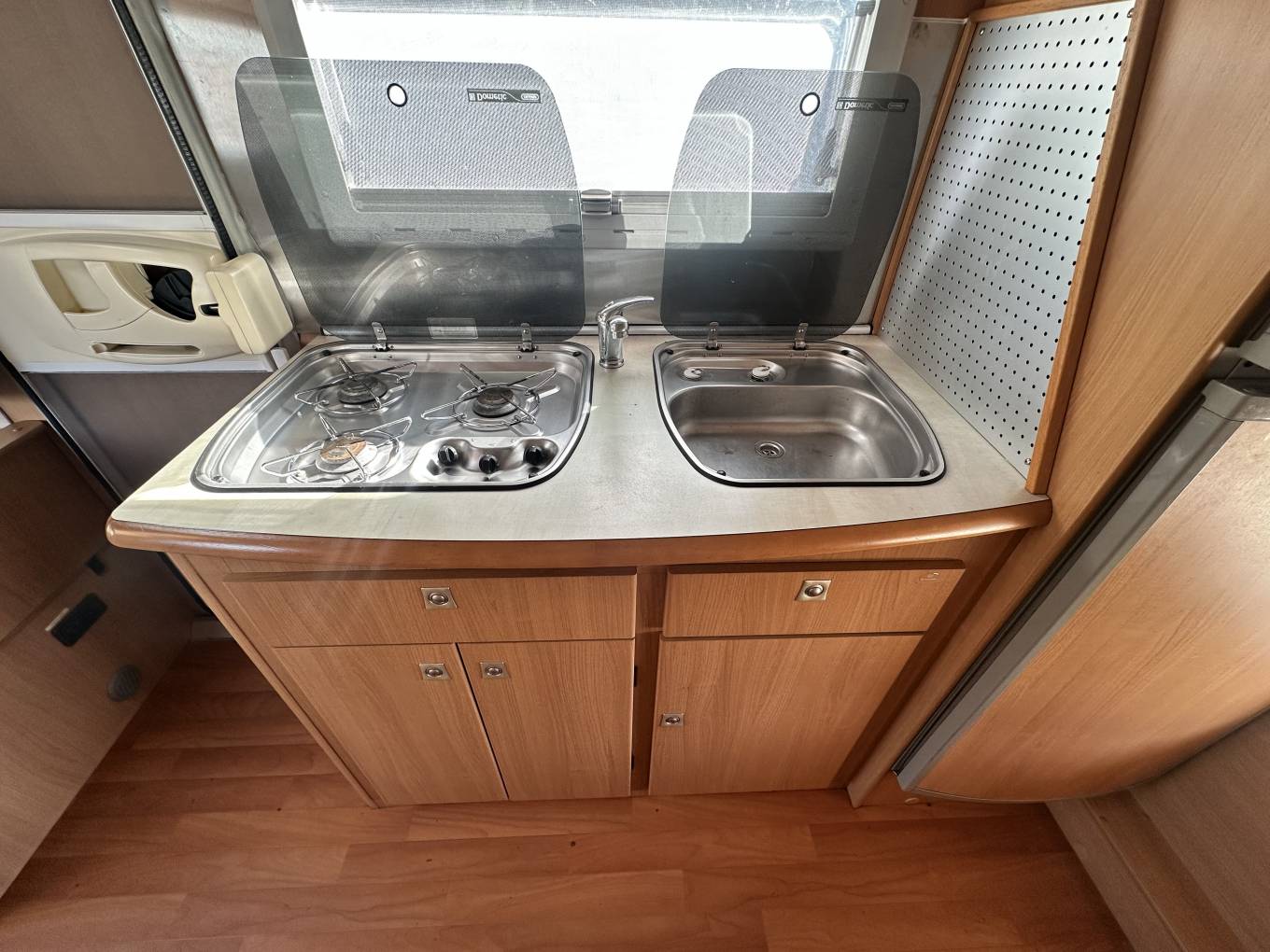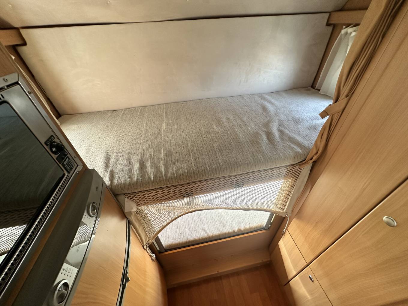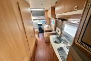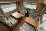 At the rear of the motorhome, you will find bunk beds including one bed that can be lifted in transit to create a large rear garage for storage with enough space for bikes and everything you will need for that relaxing family holiday. Moving forward you will find the practical washroom which has everything you need to keep yourself fresh on your travels including a separate shower, wash basin with a mixer tap, a Thetford cassette toilet with electric flush, a vanity cupboard and a mirror. Adjacent to this is the well equipped kitchen area including 3 burner gas hob, grill, oven, a full sized fridge freezer and plenty of storage. In the heart of the motorhome you will find the spacious dinette area which comfortably seats up to 6 people, perfect for entertaining or relaxing. As the night draws in this area converts to a single and double bed. Above the cab you will find another comfortable double bed completing this 7 berth motorhome.