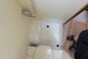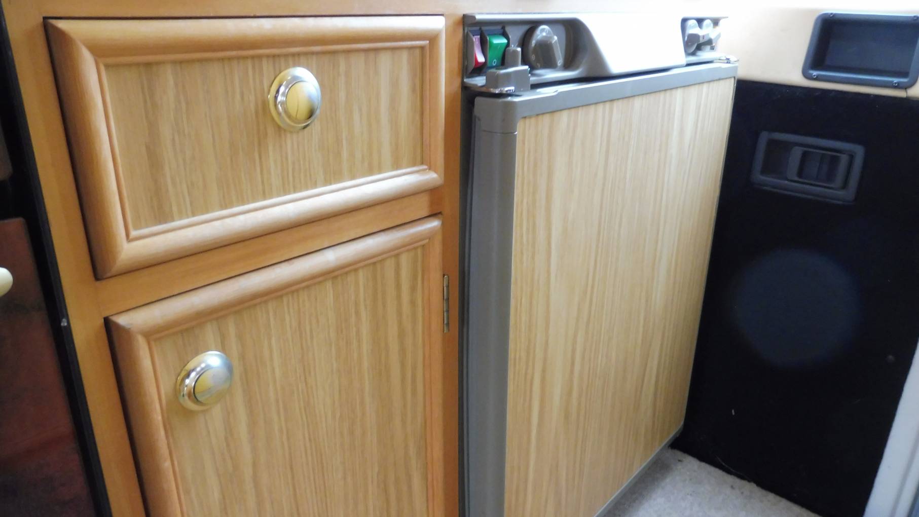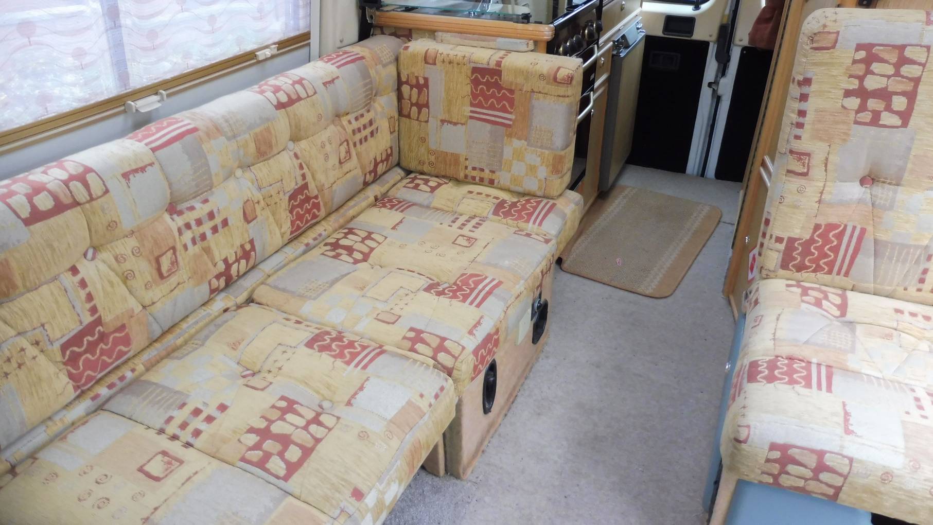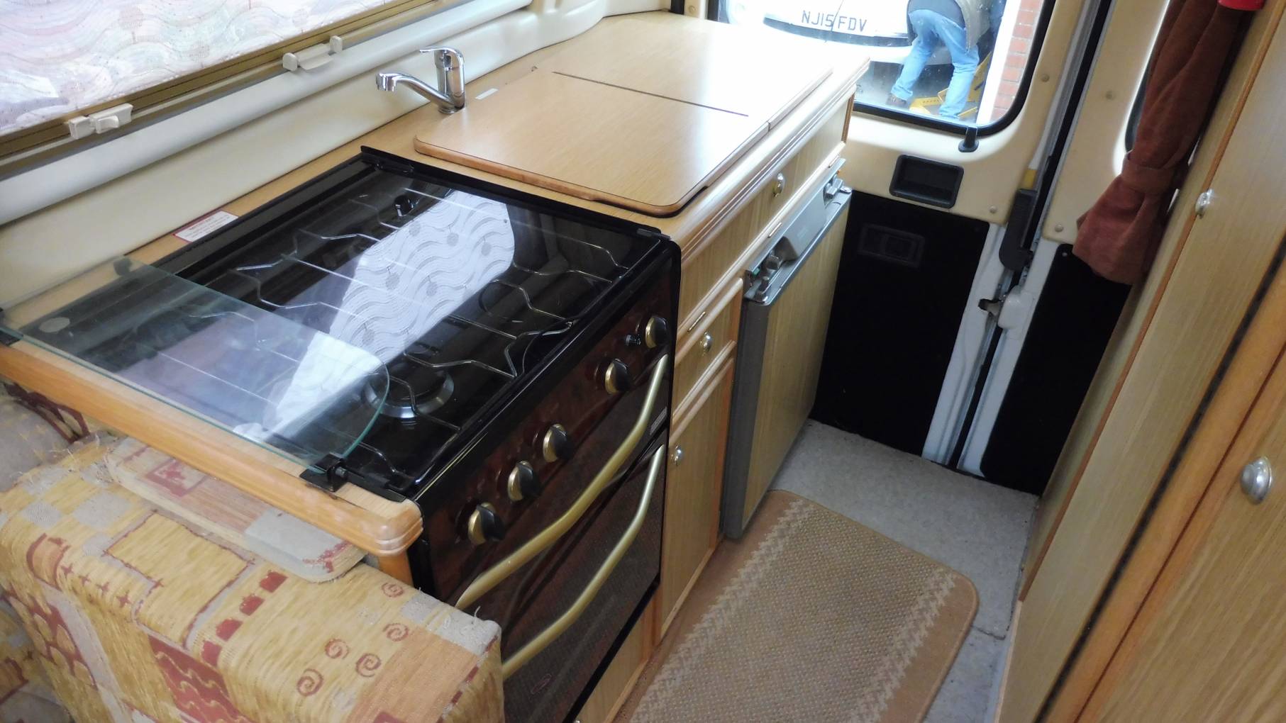 The kitchen comprises 3-burner hob, oven, grill, 3-way fridge and sink with drainer unit. Opposite sits the compact washroom with cassette toilet, fold-down sink and shower over.