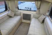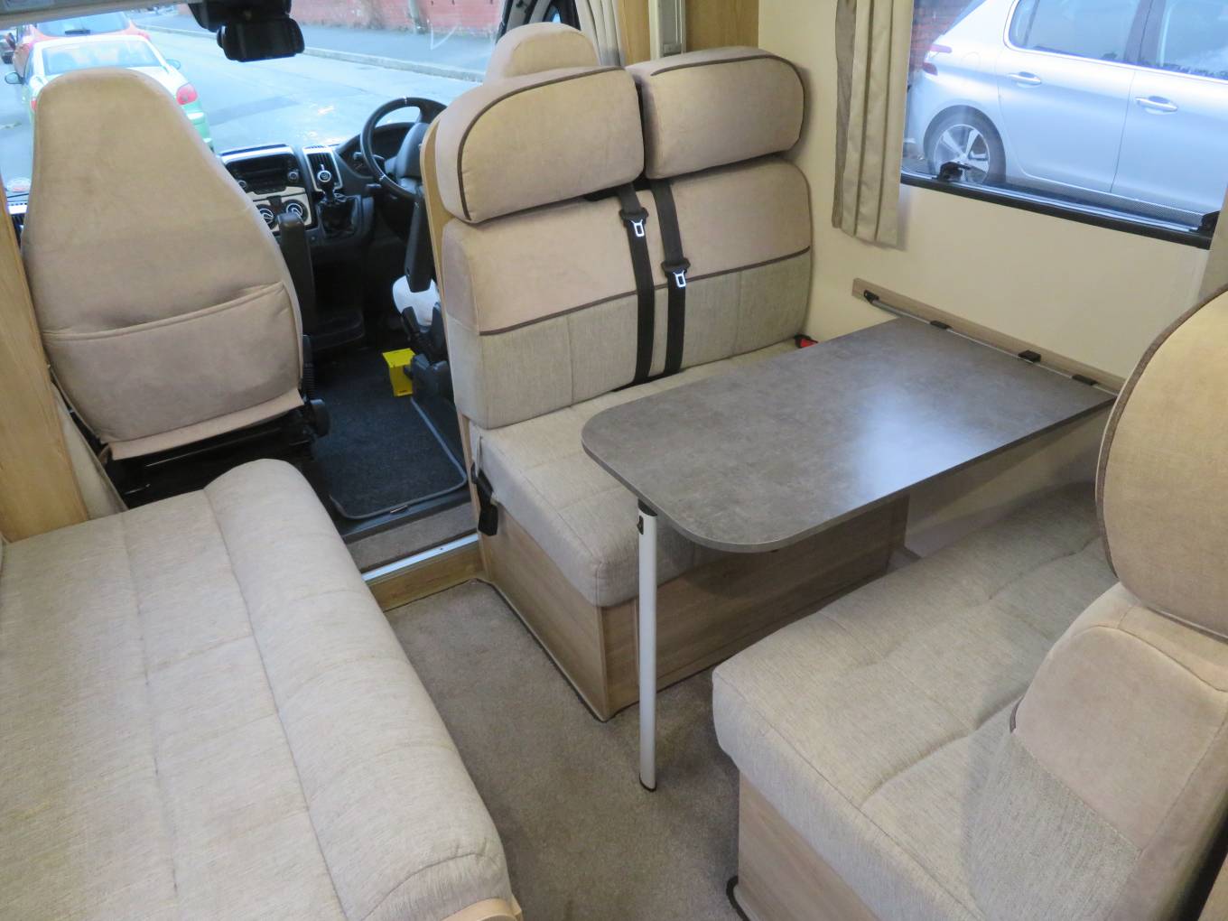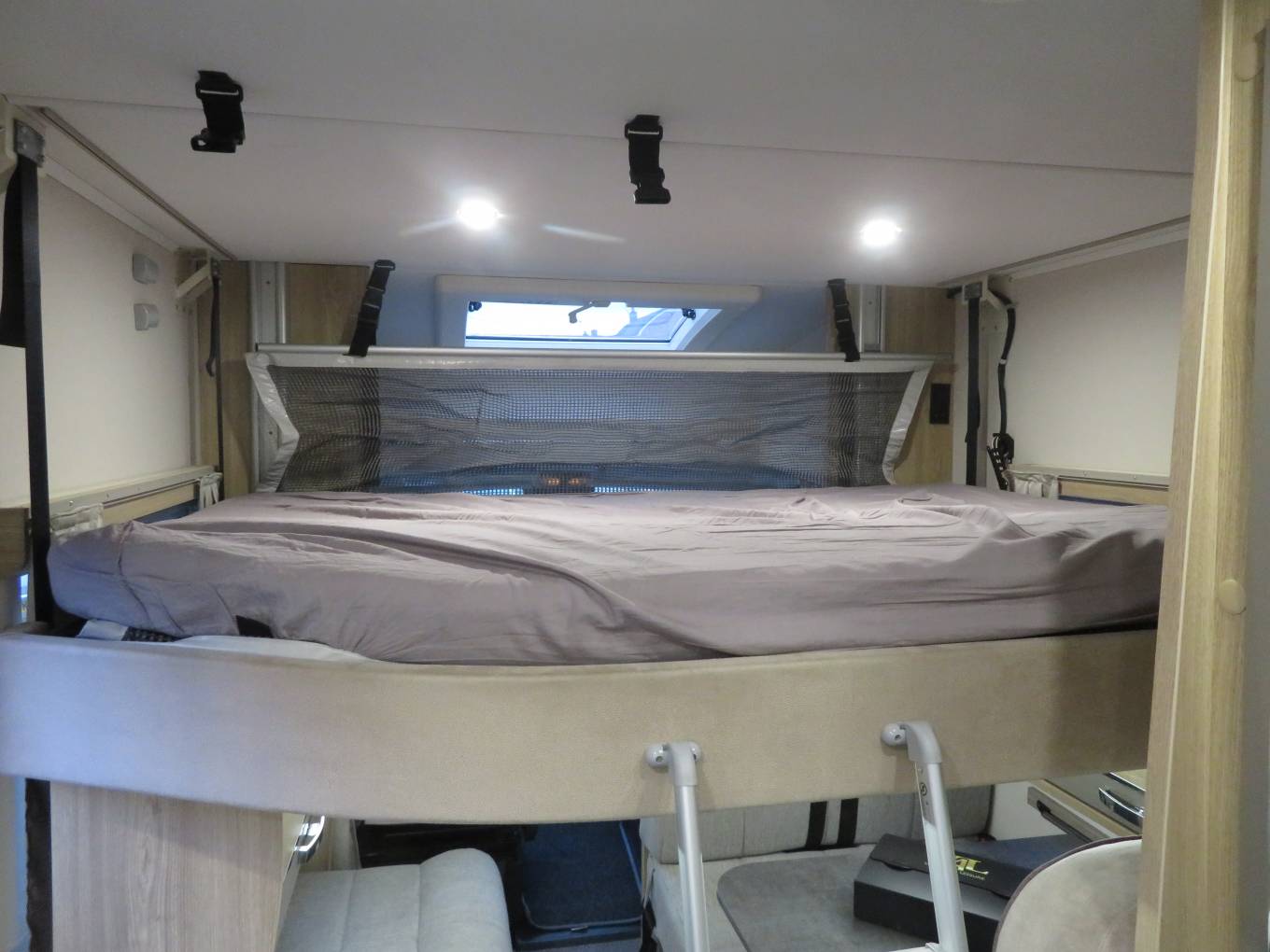 This is a six berth motorhome with six seat belts. The layout offers good space for families, starting at the back with the rear lounge that converts into a double bed, moving forward are the kitchen and washroom then to the left of the habitation door is the forward lounge / dining area. The electric drop down bed takes it's place above the dining area when required. The dining area also converts to a double bed.