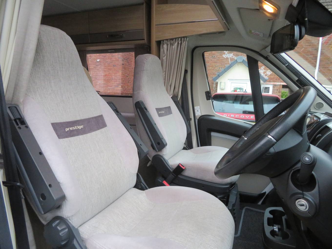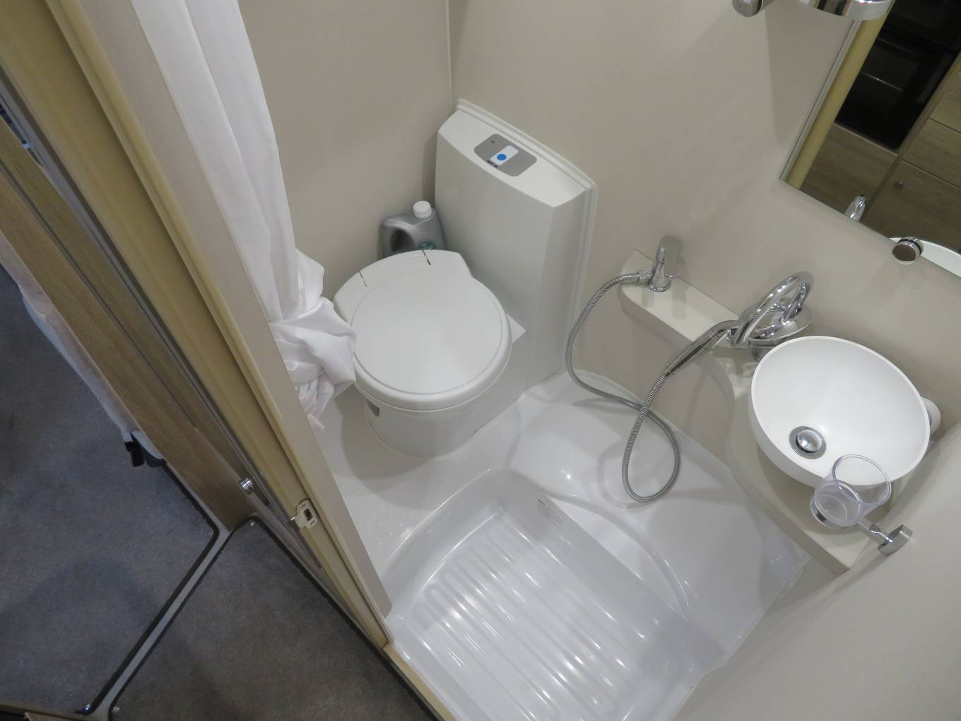 The cab is well equipped with Air con, Electric front windows, Electric door mirrors, Central locking, Cruise control, Power steering and reversing camera. The kitchen has a microwave, fridge freezer, hob and grill, oven, extending worktop, glass covers to sink and hob, plentiful drawers and cupboards. The washroom is a modern style with decent space for the toilet and shower. A mirror and roof light to make it bright and airy.