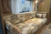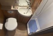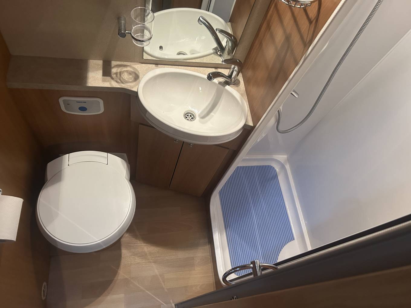 The 630 is extremely comfortable to sleep in with the two side sofas making up a large double bed (220 cm x 190cm). These sofas can also be used as two large singles - which can extend well over 2m by using the captains chairs. The motorhome comes with an excellent washroom with Thetford flush cassette toilet, vanity sink and separate shower. Heating and hot water are provided by the excellent Truma heating system. This motorhome also comes with lots of extras including large wind-out awning, bike rack, electric hook up cables and two gas bottles.
