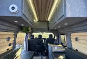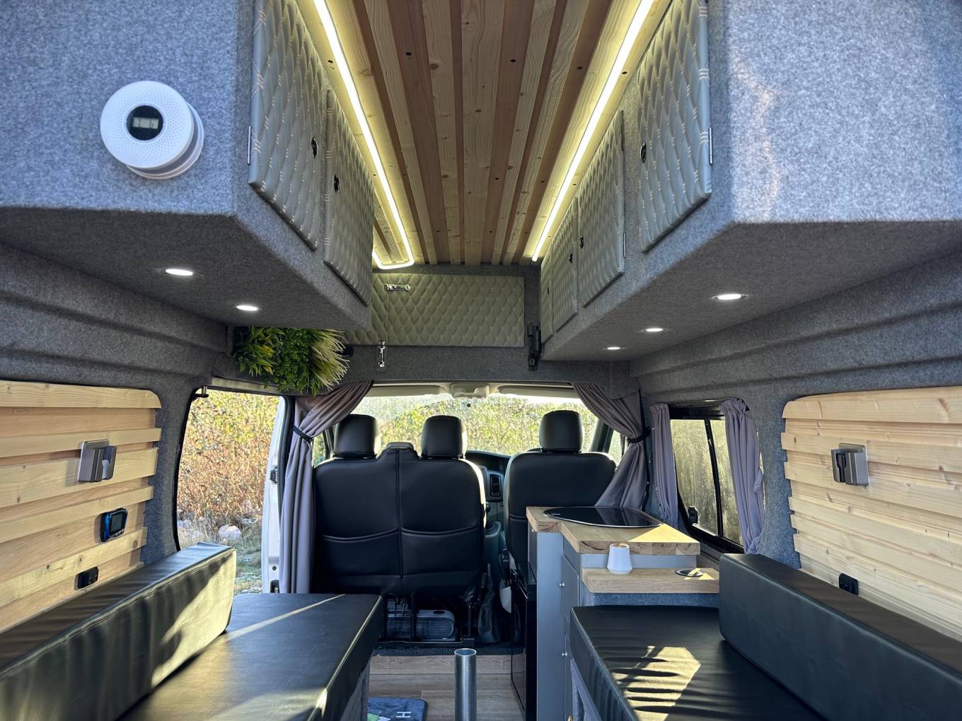Inside the van, the layout includes essential amenities such as a single ring gas stove, sink, and refrigerator, allowing for easy meal preparation while on the road. Storage compartments are thoughtfully placed throughout the interior, ensuring you can pack all the necessities for your trip. Additionally, the interior is designed with high-quality materials, providing a cozy and homely feel, even when you're far from home.