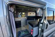One of the standout features of this campervan is its well-designed interior, which maximizes space and comfort. The U-shaped bed is a particular highlight. Located at the rear of the van, it offers ample room for relaxation and sleep, making it perfect for couples. The unique U-shape design provides added comfort, with plenty of space for two to sleep without feeling cramped. The bed can easily be converted or rearranged, offering a flexible layout to suit your needs during your travels.