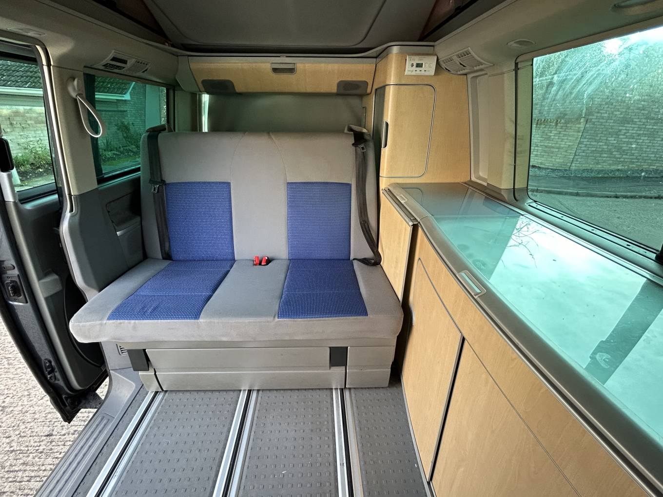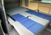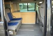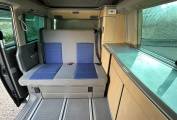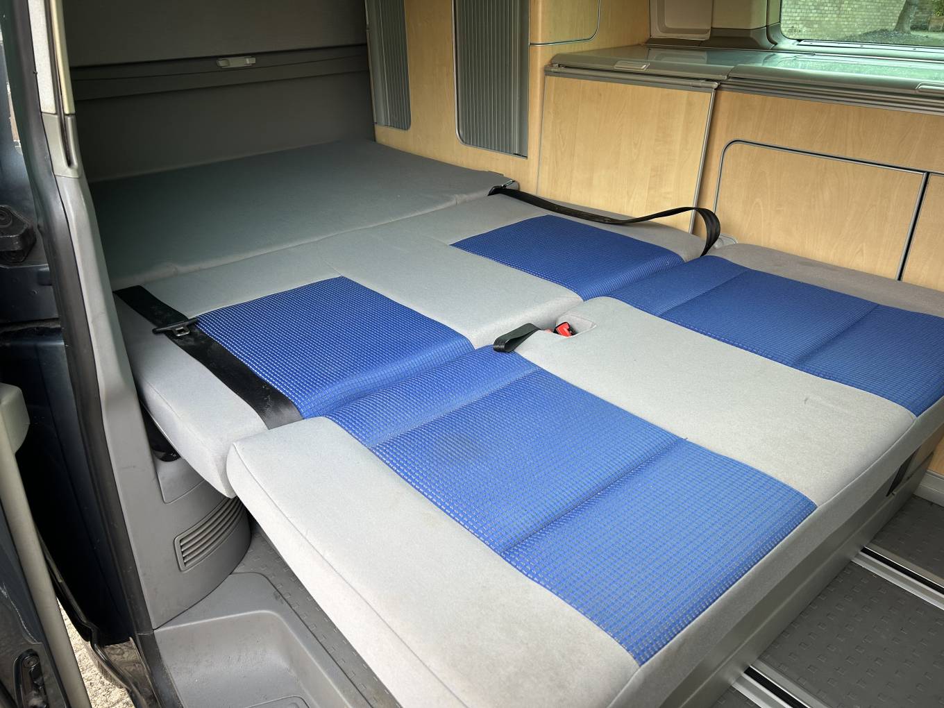 The rear seat is on 2 rails and can be manoeuvered into a variety of positions. At bedtime the rear seat converts into a double bed. The other 2 sleeping berths are in the roof and although the bed will take the weight of 2 adults it is really designed with children in mind.