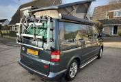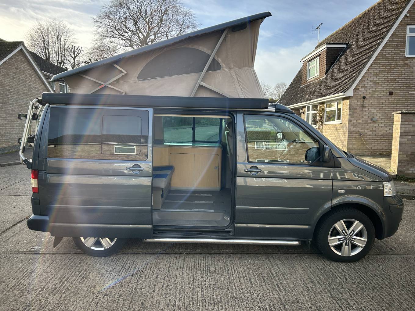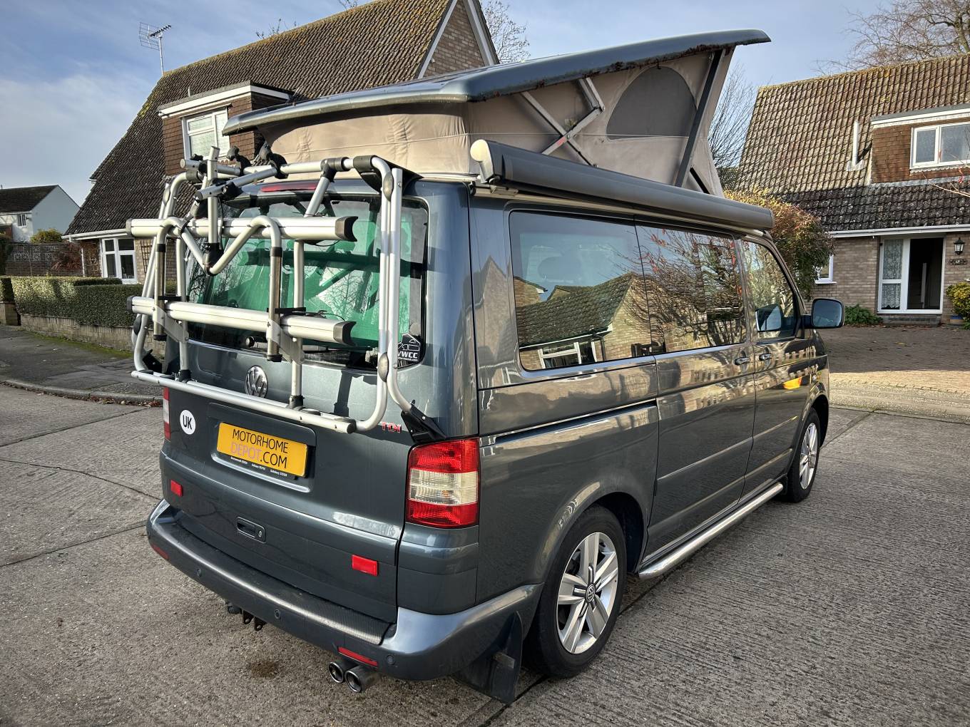 This California can be used all year round as it features diesel heating which will keep you as warm as toast in even the coldest of climates. There is a bike rack to carry 2 cycles on the rear and the campervan also features a wind out awning so it has high levels of specification. But perhaps the standout feature is the electrically operated roof which at the push of a button raises itself into position.