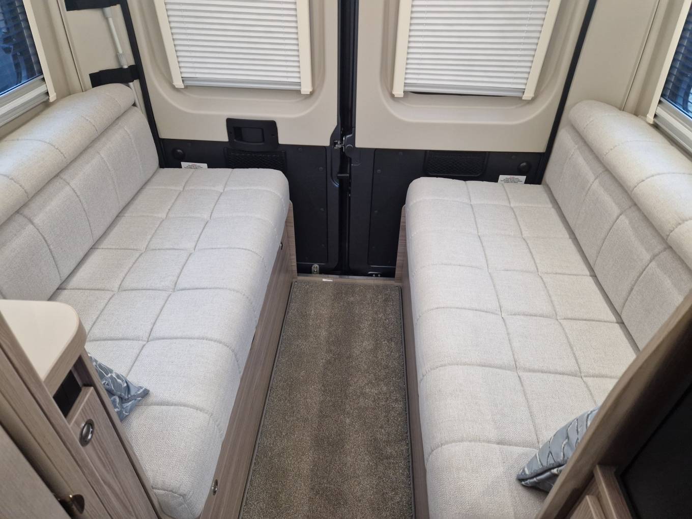 2022 Elddis Autoquest CV40 3 berth Camper for sale. This luxury Camper is presented in beautiful condition and is complimented with a huge specification list rivalled by few others. The specification includes Fiat Ducato 3500kg chassis with a 2.3l 140hp engine, rear lounge area which transforms into a double bed, front dinette area with twin swivel chairs, 4 travel seats and a third berth, fully equipped kitchen with hob, oven, grill, fridge freezer, microwave oven and a combination style washroom for convenience. Other features include awning, alloy wheels, electric step, solar panel, reverse camera, bike rack, LPG refillable gas, remis cab shades, TV aerial, cab air con, cruise control, roof fan extractor and much more. Sale includes full years warranty, mechanical service and gas certificate. Finance and part exchange available. Please call for further details…