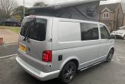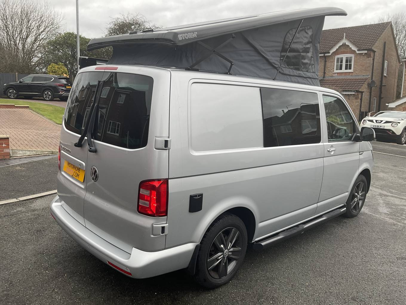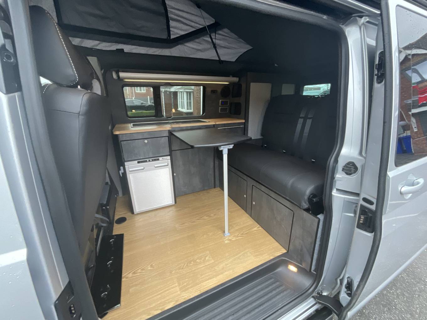 Here at Motorhome Depot Stoke on Trent, we are delighted to have a 2019 edition of a Volkswagen T6 campervan. This 4 berth, 5 belt high quality camper has been lovingly converted by Northpoint Campers of Stoke on Trent and boasts the 2 litre, 147BHP engine with the 6 speed manual gearbox and includes a host of additional extras that include Diesel heater, slimline solar panel and Fiamma sun canopy to name a few. Starting at the rear, we have the desirable Rib bed that not only includes 2 additional travelling seats with ISOFIX converts into a comfortable double bed if required. The kitchen area is comprised of a 2 burner gas hob, handwash basin and a 12v mini fridge. There is ample storage for any pots and pans too! The pop top roof also houses the additional sleeping space with comfortable slim mattress for a further 2 people. Within the drivers cab you have all the usual mod cons as well as a swivelling double passenegrs seat to give ample seating within the rear. This fantastic high quality camper is certainly one not to be missed so please call our friendly sales team.
