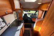 The main feature of the motorhome is the French bed, which will accommodate two adults adults. Upper aircraft style lockers provide plenty of storage, plus under the bed is a large storage area that can be accessed by lifting up the bed, or accessed via an external locker door.
