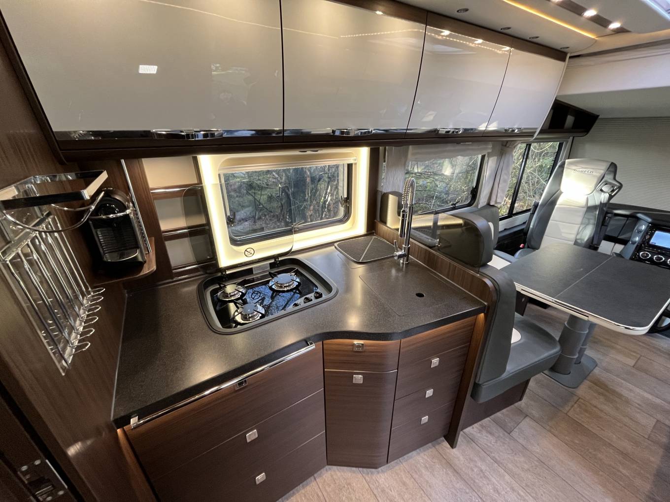 External shower in side locker, outside bbq point , 120ltr underslung gas tank plus side locker with room for 2 additional gas bottles