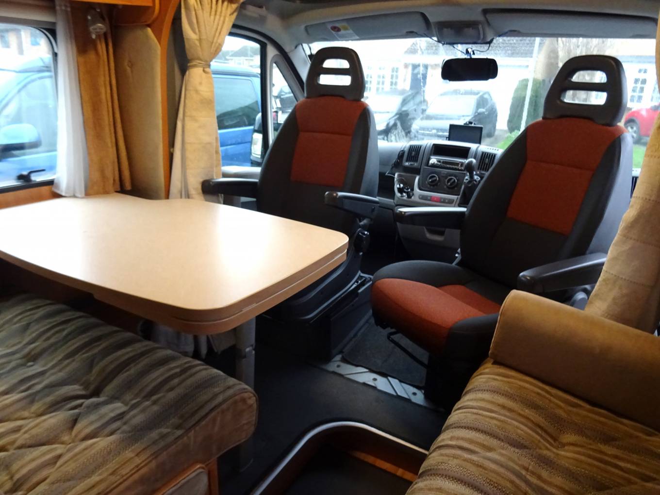 At the front of the Flash 08 is the spacious dinette. This easily converts into a double bed making this a 4 berth. Both cab seats swivel.