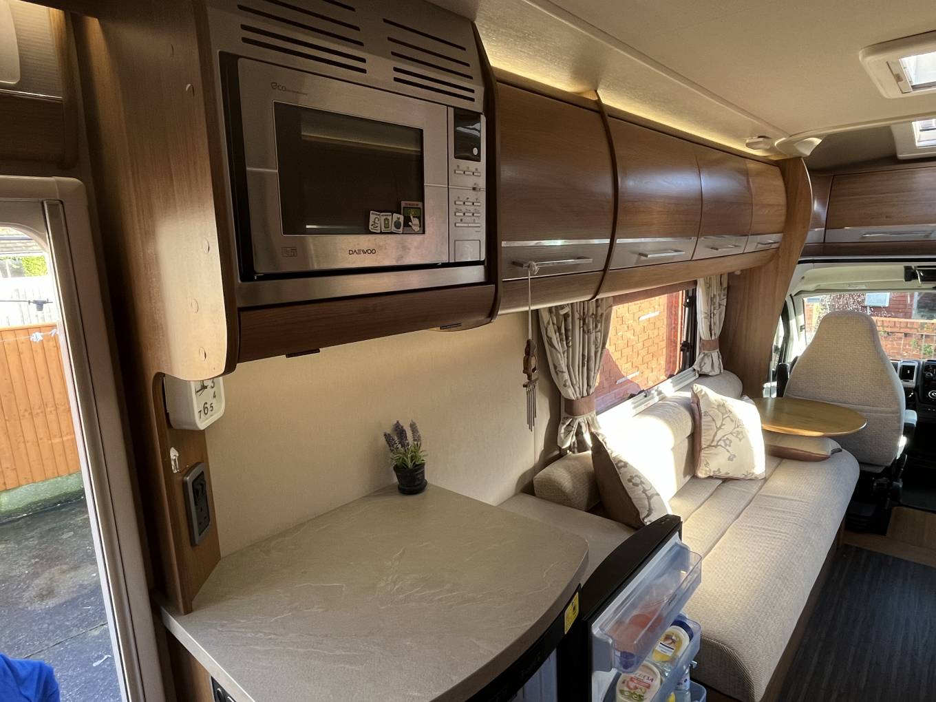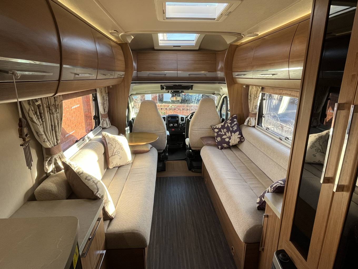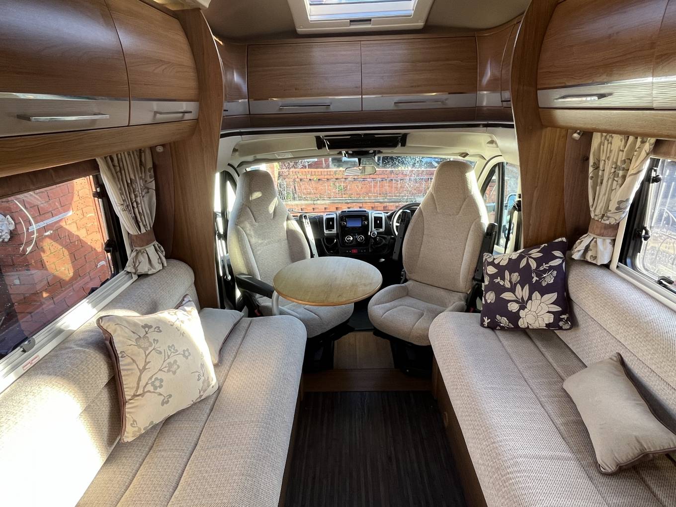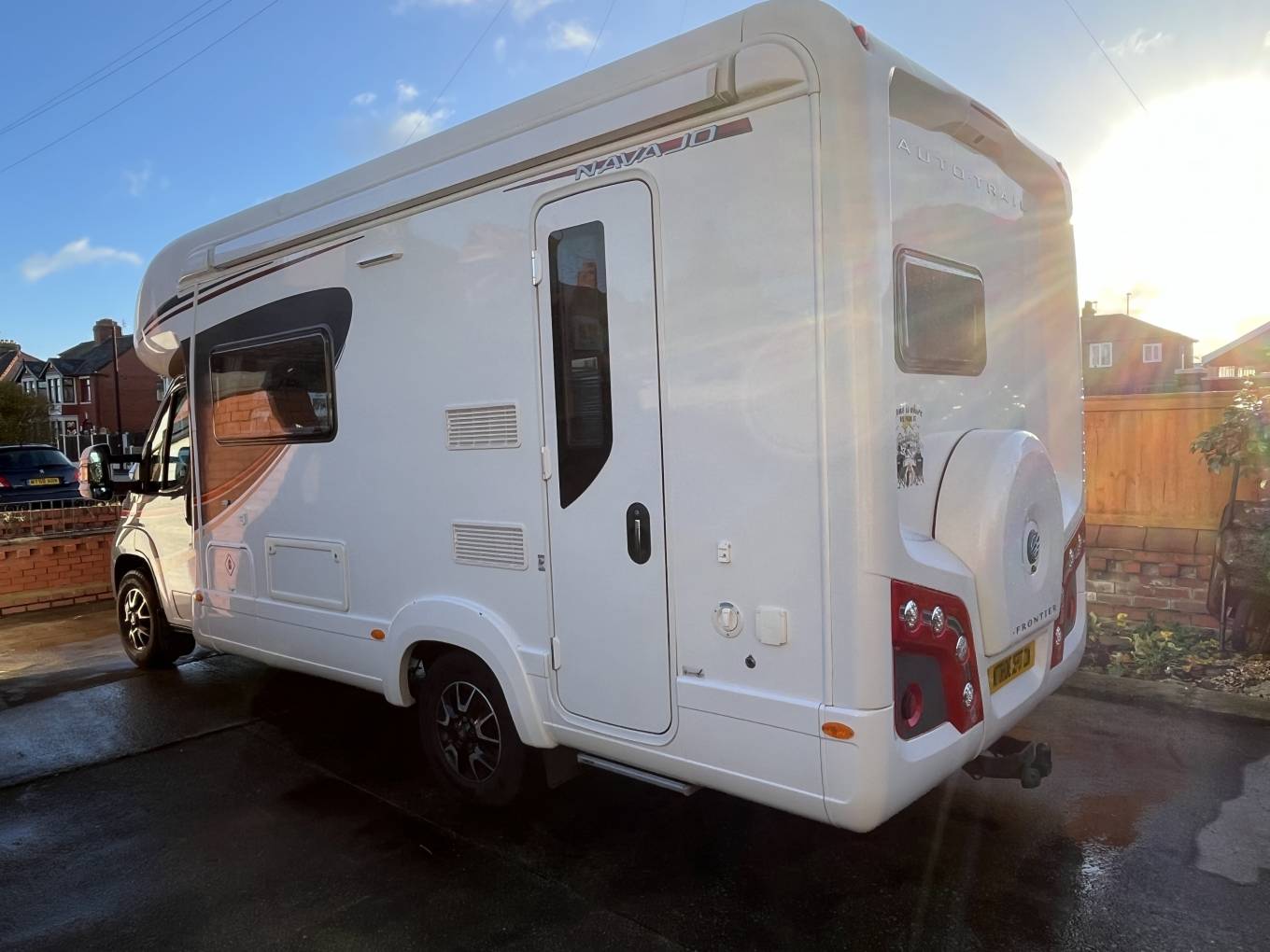 Autotrail Navajo Luxury 2 Berth with Large Lounge and End Kitchen. This motorhome has been well maitained with good service history, including new cam belt and water pump, one previous owner, 21,382 miles and is in excellent condition. At the rear there is a well equipped kitchen, including fitted microwave and next to this is a good sized bathroom with separate shower compartment. In the centre is the large lounge area with with 2 bench seats that can be used as 2 single beds or one large double and at the front the cab seats swivle. It comes with Cab Air Con, Cruise Control, DAB Radio, Rear Camera, Sat Nav, Alloy Wheels, Blown Air Heating, Canopy Awning, TV, Electric Step, Tow Bar, Solar Panel, Outside Shower and BBQ Point. It also comes with mains lead, gas bottle and 2 sets of keys. Available for viewing by appointment in Blackpool, call for more photos, videos and information.