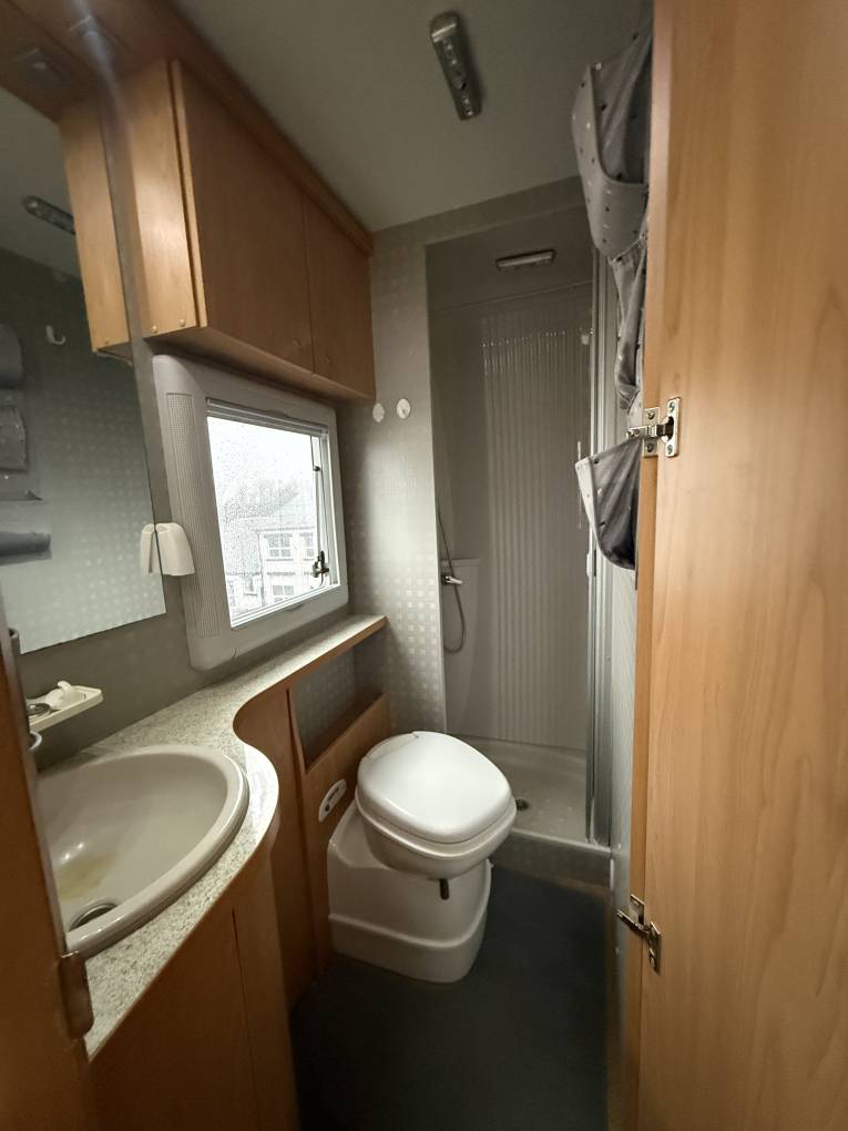 cassette toilet and separate shower enclosure. Moving into the kitchen area we