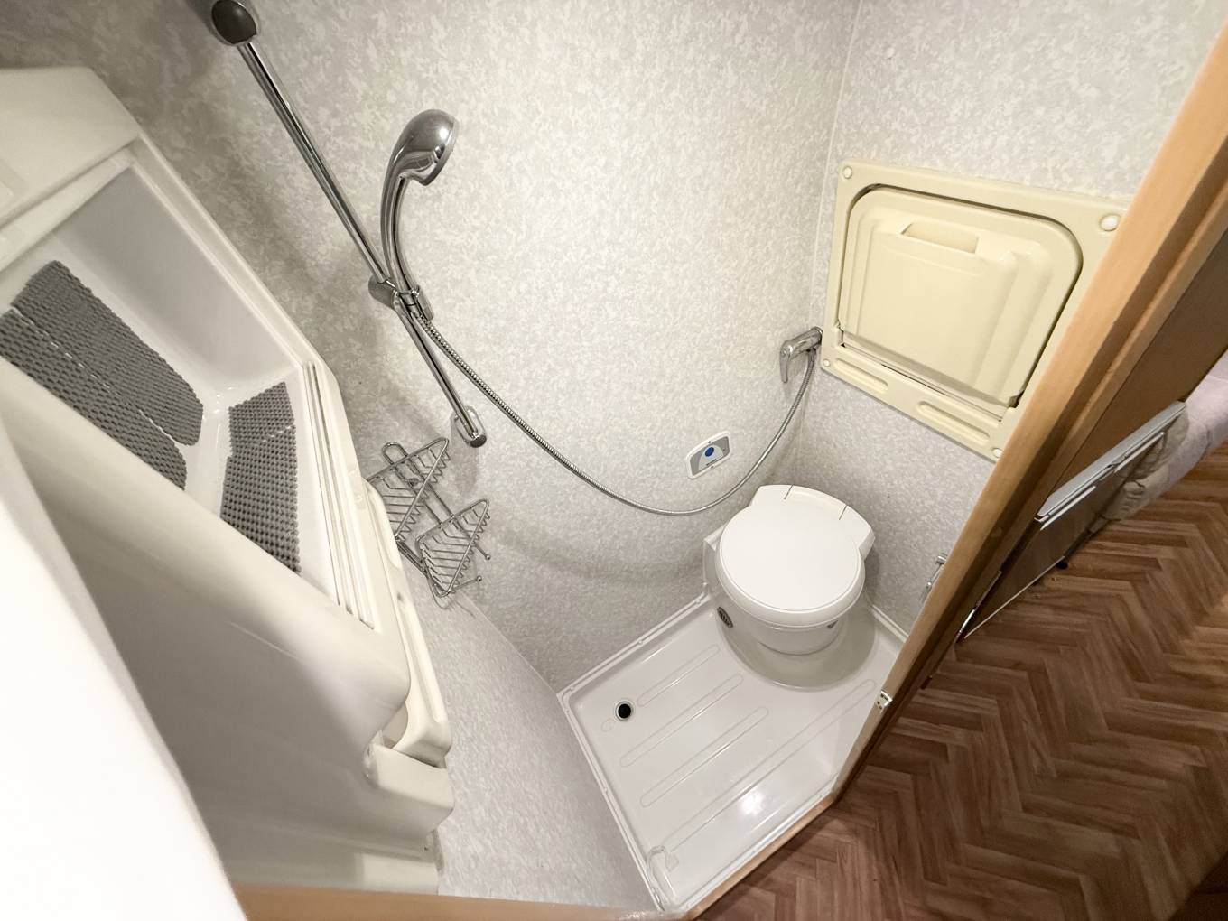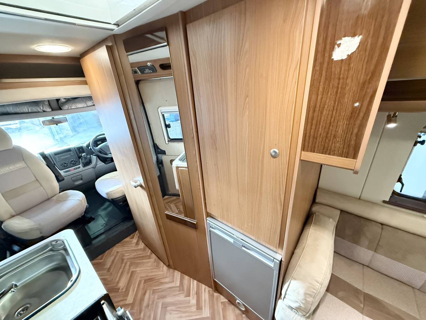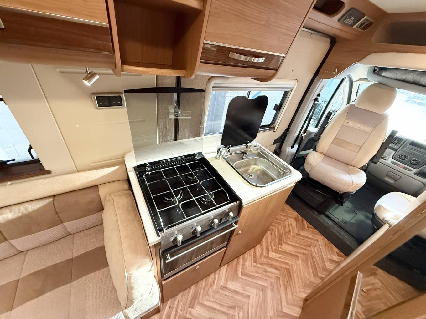 At the rear is the all-important and much sort after lounge with rear opening doors and long, comfortable bench sofas, that face each other, ideal for socializing, stretching out and relaxing or dining. The seating simply slides out to meet each other in the middle, the back rests drop in as infill cushions and the large double bed is up and ready,. Pleated blinds are supplied for all the windows. Moving forward passed the wardrobe space is a well-proportioned well-lit kitchen, which includes a sink with glass cover, the Thetford Triplex hob includes three gas burners and below with combination grill and oven, an extendable worktop. Adjacent is a fridge-freezer and there is plenty of cupboard and overhead locker space. Opposite is the washroom which for this size of van is very impressive. This Motorhome is perfect for so many occasions which explains why its so popular. This Motorhome is packed with extras and for this price range they dont come around often like this.