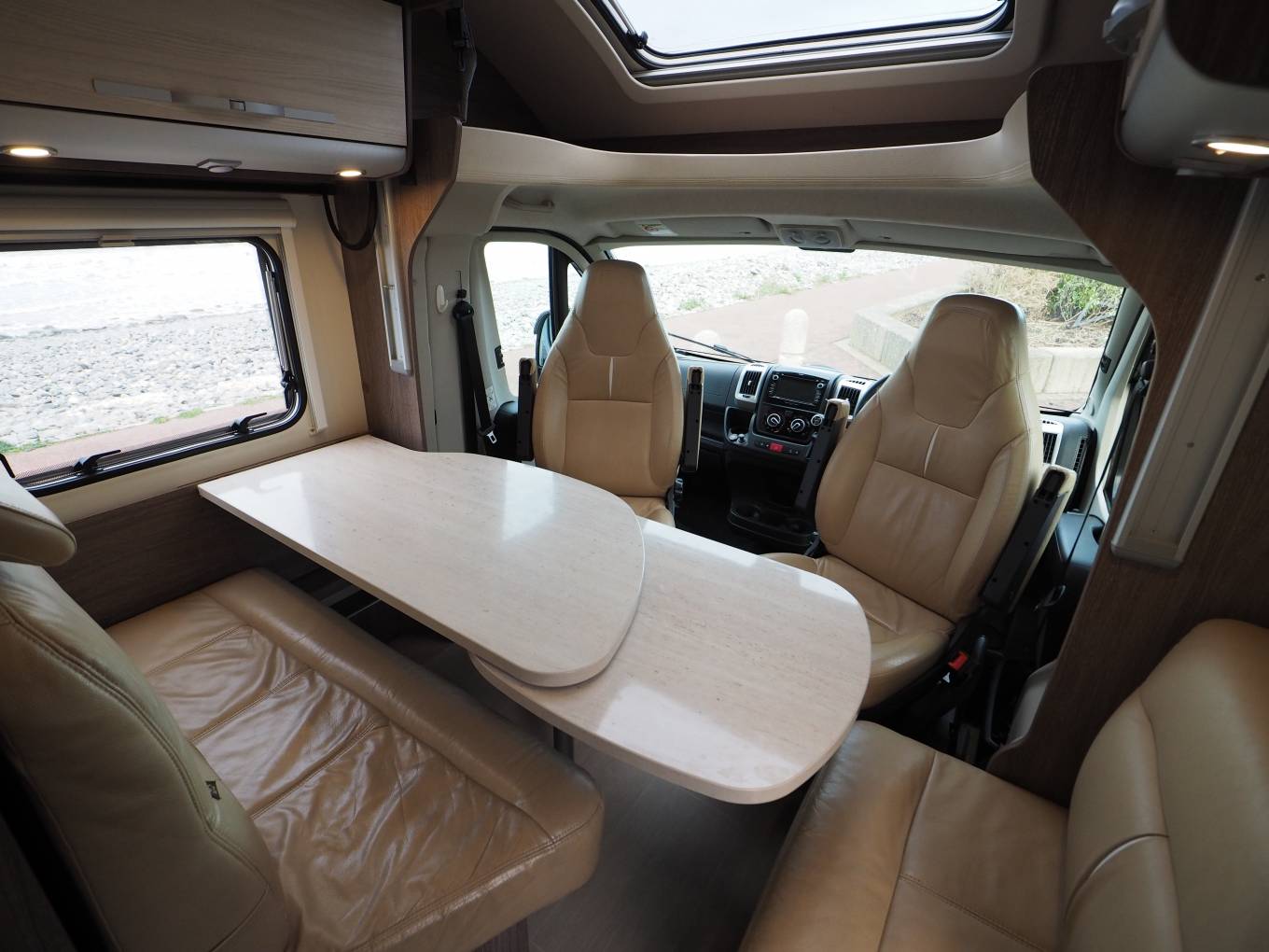 A refillable gas-flow system with European adaptors, 230v electric hook-up and 12v leisure battery with solar panel provide the power. Heating and hot water from the dual fuel Truma sytstem.