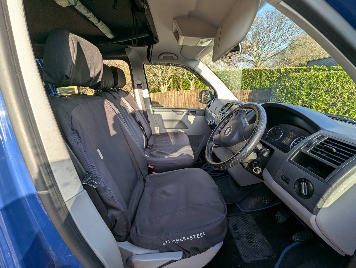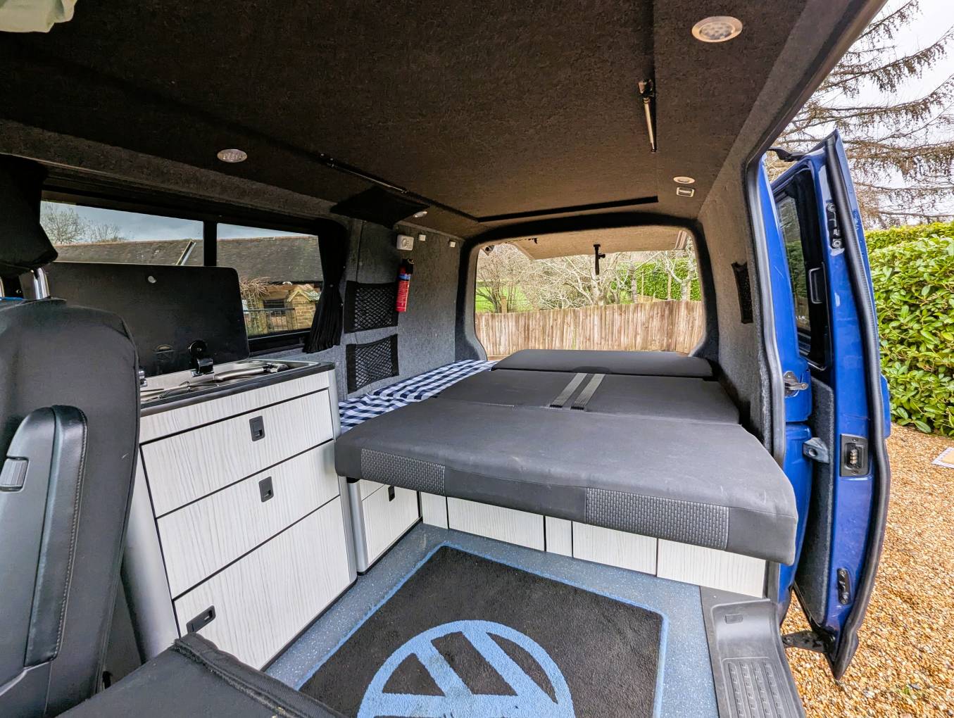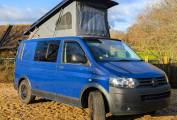 With a pop top with roof bars, a four-bike rack, a compact kitchen and a large compressor cool box/cold store, this campervan is an unusual proposition which will appeal to those wanting a daily drive vehicle, with off the beaten track capabilities. This is the two litre six speed engine producing a healthy 140 BHP, for relaxed cruising and decent torque. The paintwork is deep blue and has no signficant dents or stone chips.