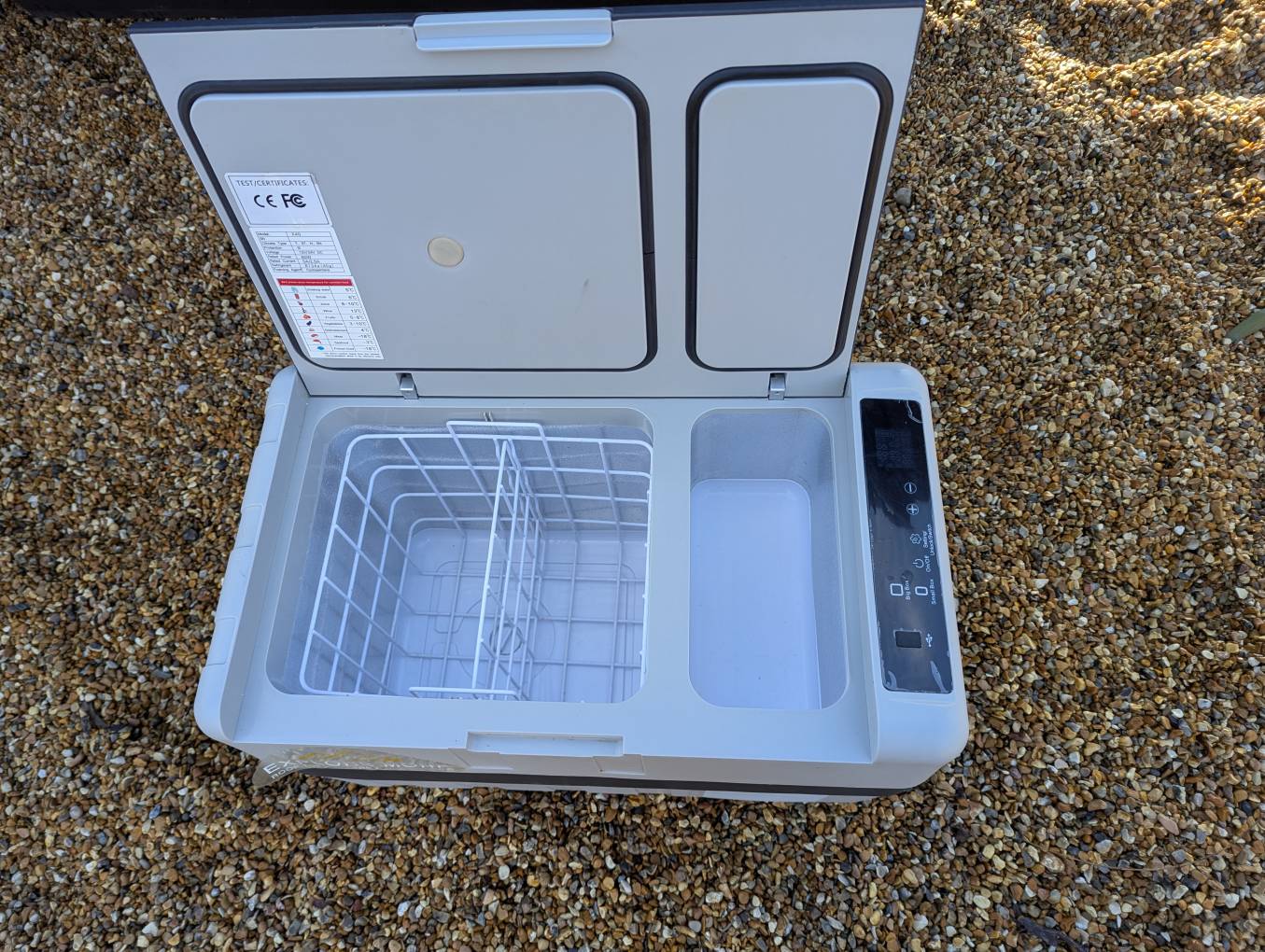 The compressor cold store can run off 230 and 12V and there is a take off for the latter under the rear seat shelf where the cold store lives, in practice on a bright day the cold store unit can run directly from the solar panel.