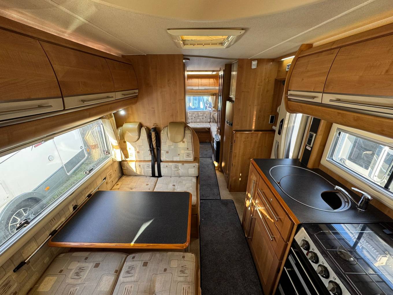 The 2009 AutoTrail Scout SE is a versatile and well-equipped 6-berth motorhome, designed to offer comfort and practicality for families or groups. With four seat belts, it ensures safety during travel. The rear lounge area provides a spacious and inviting setting for relaxation, while the over-cab bed offers an additional sleeping space, making it ideal for larger parties.