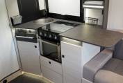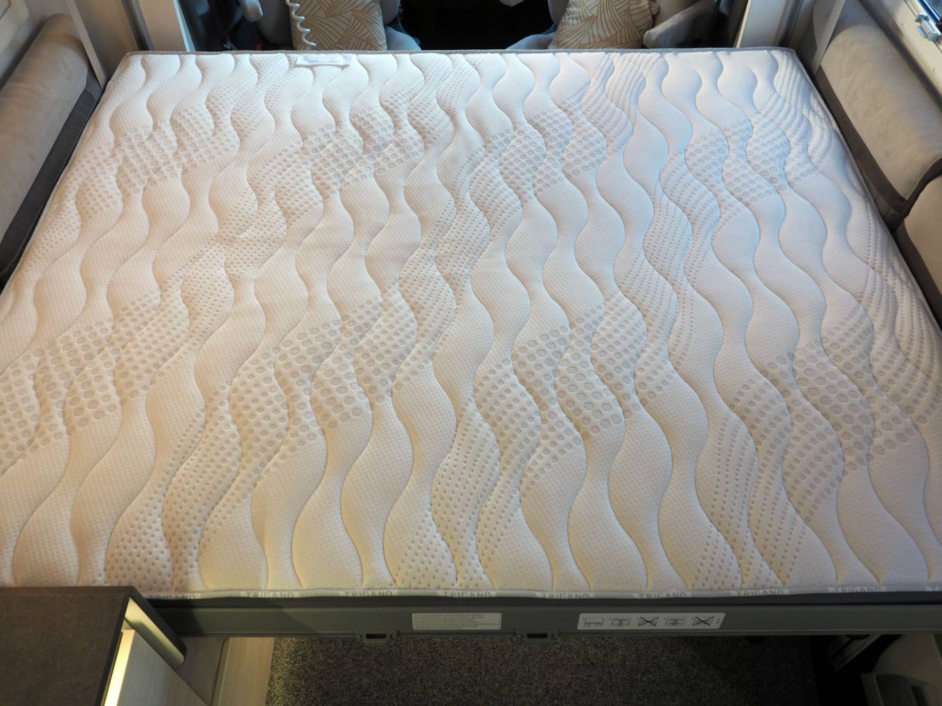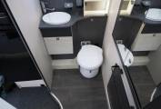 The upper bed electrically lowers to a minimum height of just 800mm and has a ladder for when used in the raised position, allowing space for the lower bed made up from the dinette. Midships you will find a well equipped kitchen with dual fuel hob, fridge freezer, gas oven and grill, plus a range of storage options. To the rear is a sumptuous washroom with deep lockers, drawers, separate shower cubicle, toilet and vanity sink, access to the rear garage. Its an incredibly well designed space.