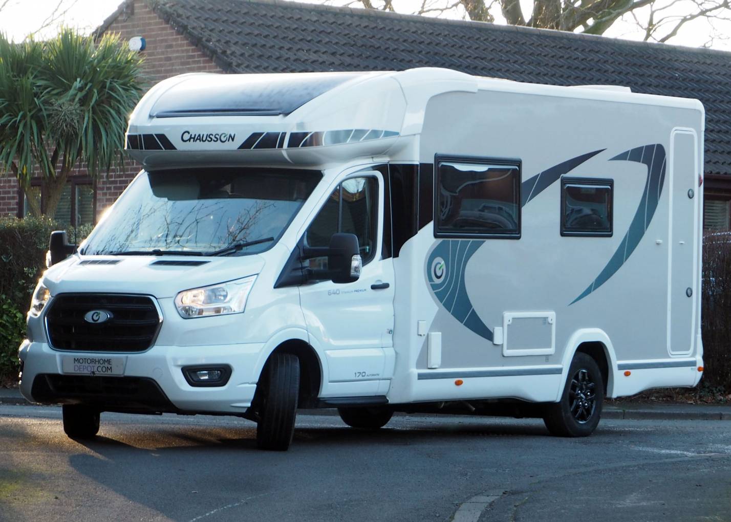 Fabulously equipped, roomy and versatile 7 metre automatic 4 berth motorhome from Chausson, offering excellent internal and external storage, generous living space and high levels of equipment. Attractive and with modern styling throughout, the Chausson has well planned accommodation for up to 4 persons, with 4 seatbelts in total. Plated at 3500KG and based on the Ford Transit fully automatic chassis with 170bhp on tap, the Chausson is easy to drive with no licence restrictions.