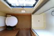 At the rear you have a really lovely washroom with a shower and a perspex screen. There is also a Thetford cassette toilet, a wash basin with mixer tap, a large mirror and a bathroom cupboard to store your toiletries. A skylight and a window ensures that the washroom gets plenty of light.
