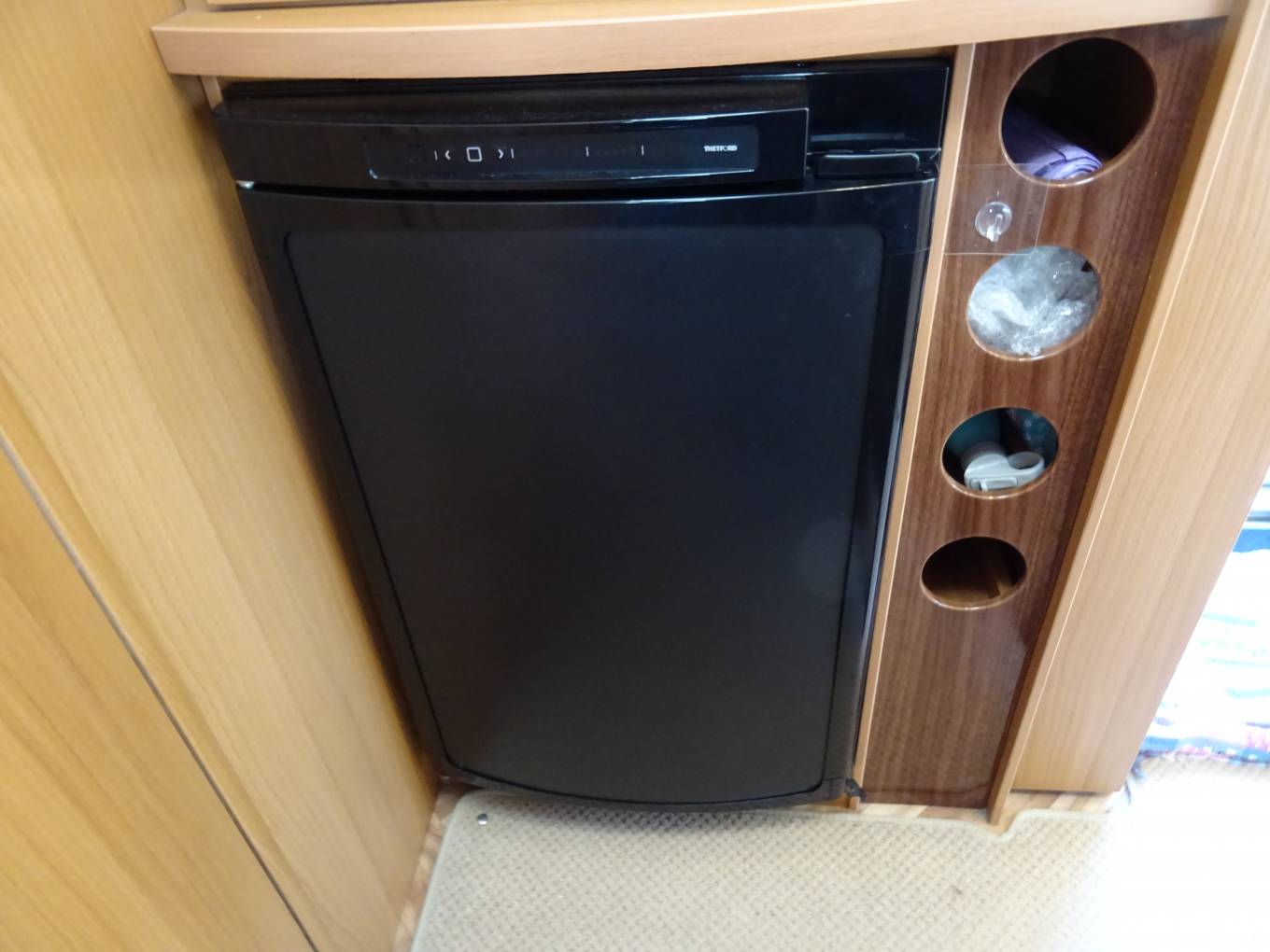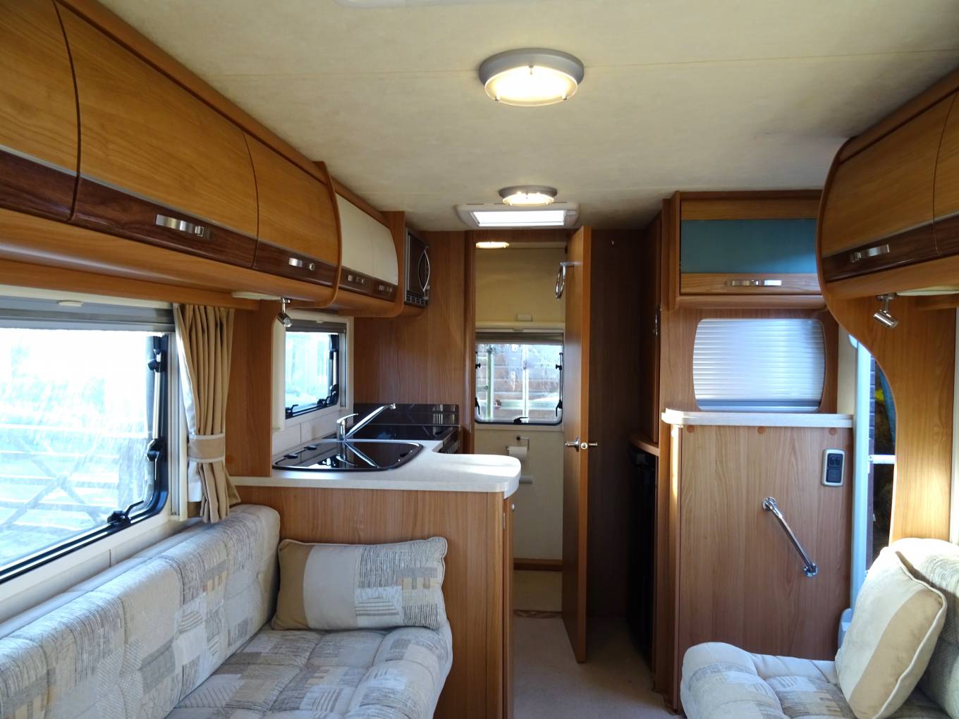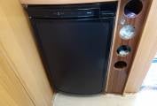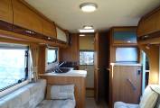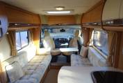 The mid-kitchen is well equipped so if you enjoy cooking while you're away you're well catered for. There is a dual-fuel hob with an electric hotplate and 3 gas burners, an oven and grill, a microwave, a sink with a mixer tap and a good size fridge with a freezer compartment. Storage space is plentiful thanks to the numerous cupboards and overhead lockers.
