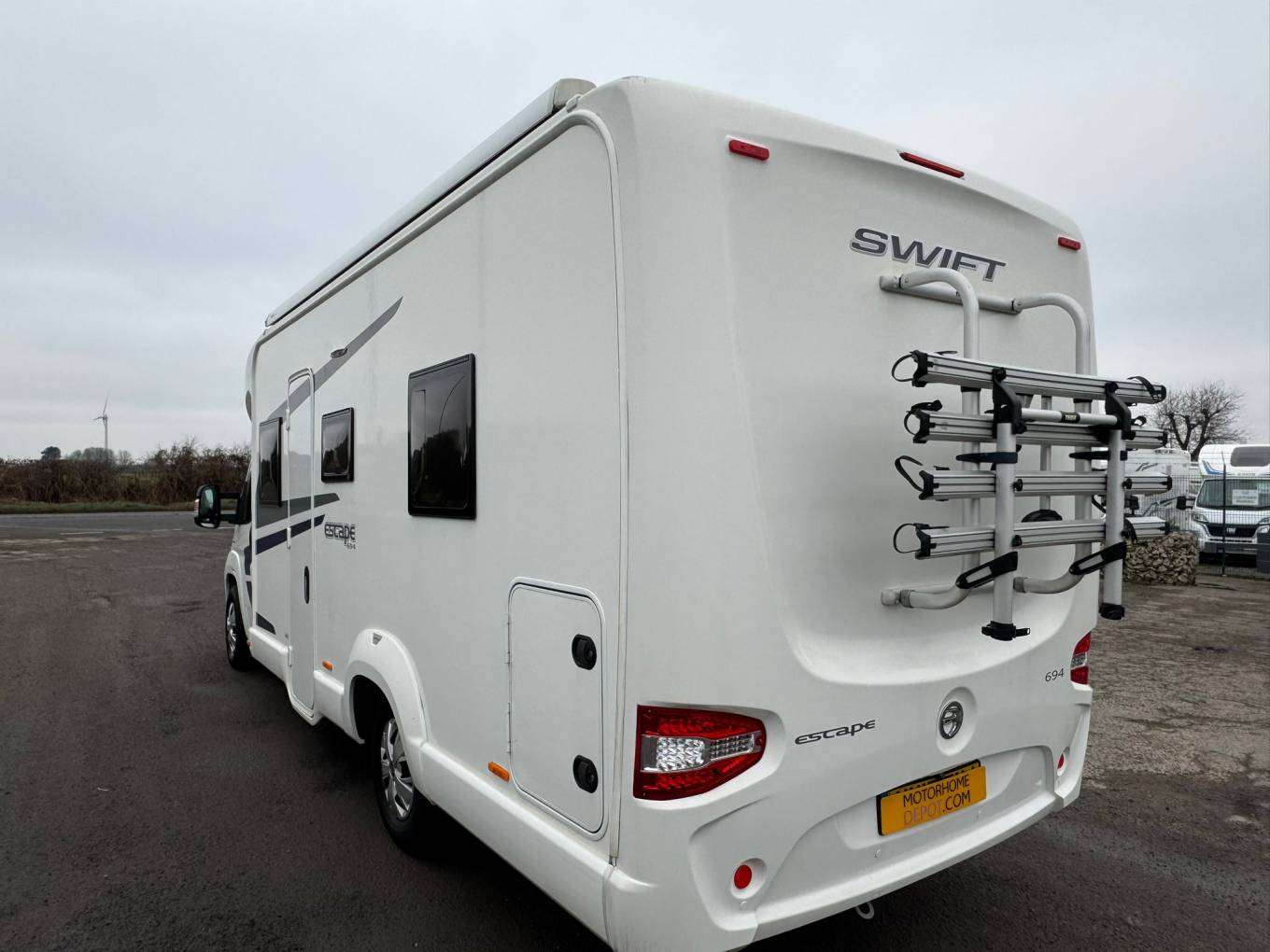 The 2017 Swift Escape 694 is a stylish and practical 4-berth motorhome, perfect for couples or families seeking comfort and functionality on their adventures. With its contemporary design and well-thought-out layout, this motorhome is ready to hit the road.
