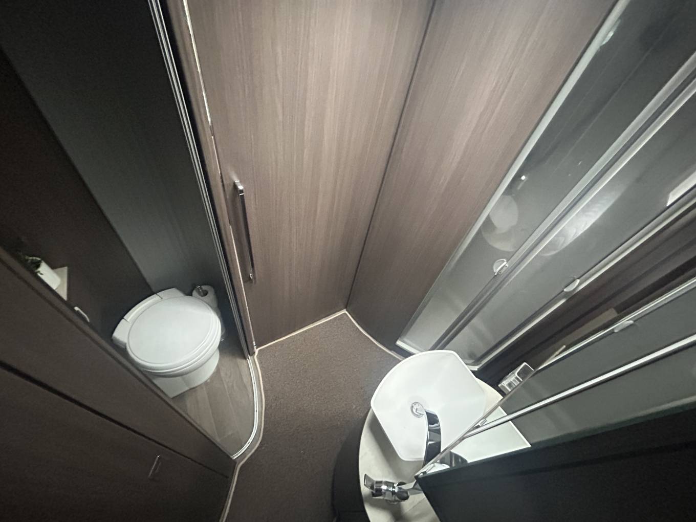 The i920 is exceptionally comfortable to sleep in and has a lovely Island Bed at the rear. It also comes with a further large double electric double drop-down bed at the front. There is a central washroom which can be accessed from both the front and the rear of the motorhome and has a flush cassette toilet, sink and separate shower. Heating and hot water is provided via the excellent Alde heating system. Internally the motorhome has lots of storage including aircraft style lockers, cupboads and further storage areas in the double floor.