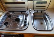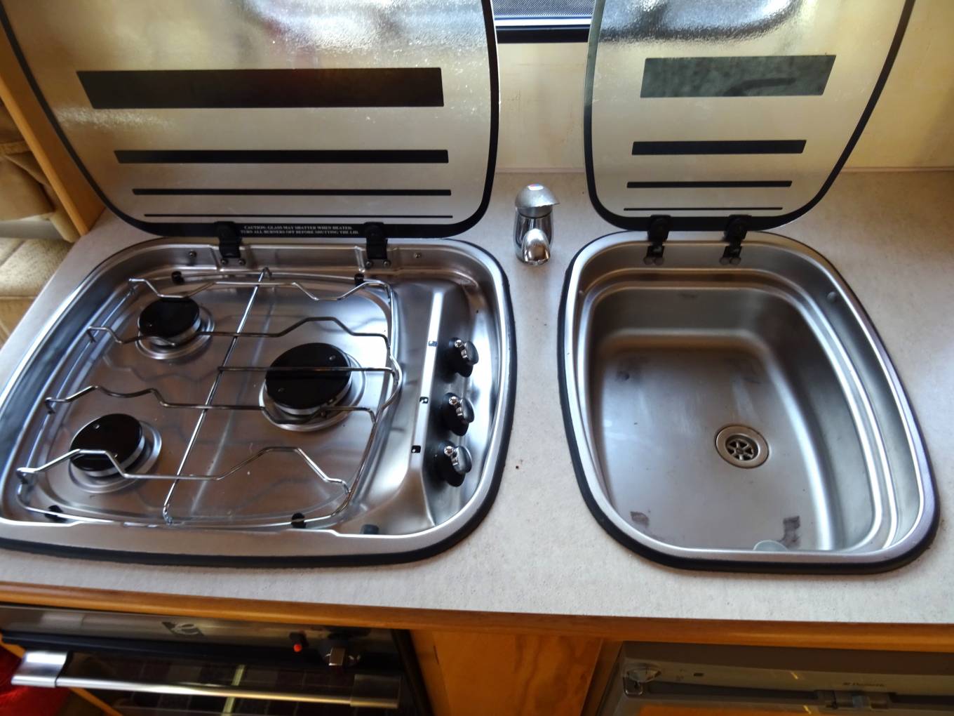 gas hob, oven and grill, three way fridge, with additional storage and pull-up