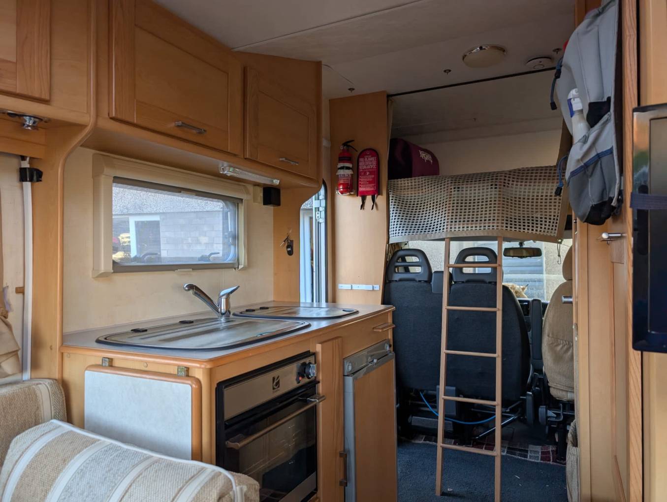 motorhome has an overcab bed, centre kitchen and washroom. It is also capable of sleeping