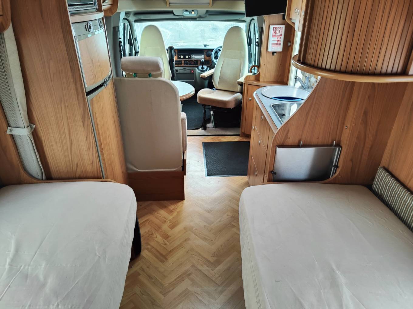 This is an outstanding example of the high spec Burstner Delfin T700 performance. This luxury 7.0metre 2 berth with 4 seatbelts lowline motorhome features 2 fixed singles towards the back that adjoin a spacious washroom with separate shower. To the front is a dinette that utilises the 2x rotating Captains seats to form a seating area for 4. To the centre is a well equipped kitchen with a 3 burner hob, full sized fridge freezer, oven, grill and microwave. Additional extras fitted include a HPC self levelling set up, towbar, Automatic gearbox, satellite dish, cab aircon, alloys, tv, rear suspension assist, awning and a reverse camera. 69k miles from new with excellent history. Based on the fantastic Renault Master cab with a 2.5dci turbo diesel engine. Based in Kent and more pictures available.