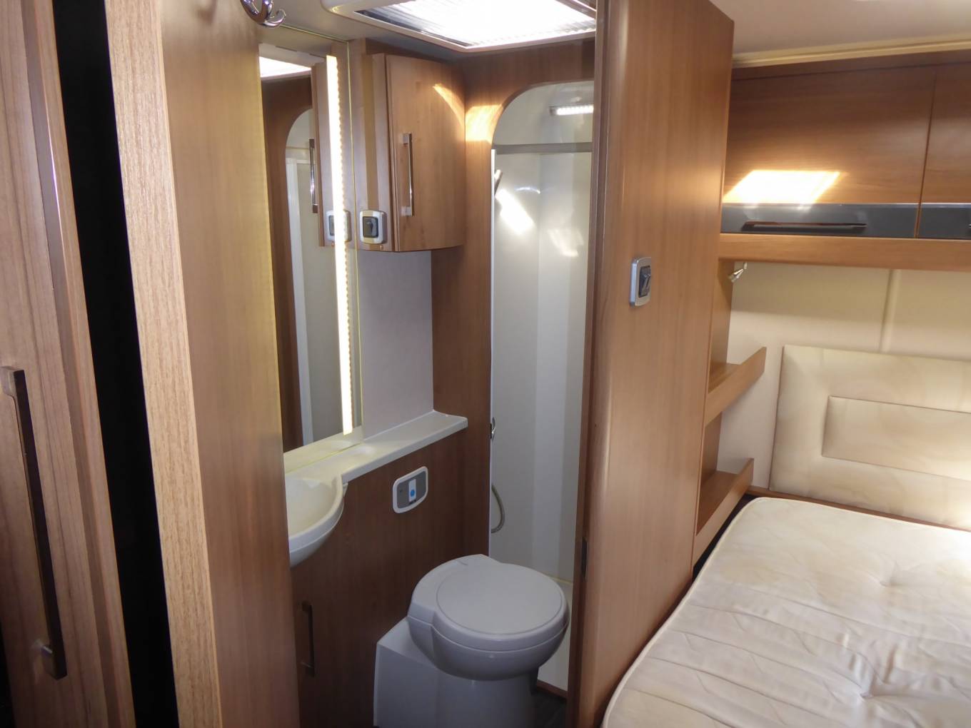 bed, and an offside wash room with a toilet, a hand basin, and a separately