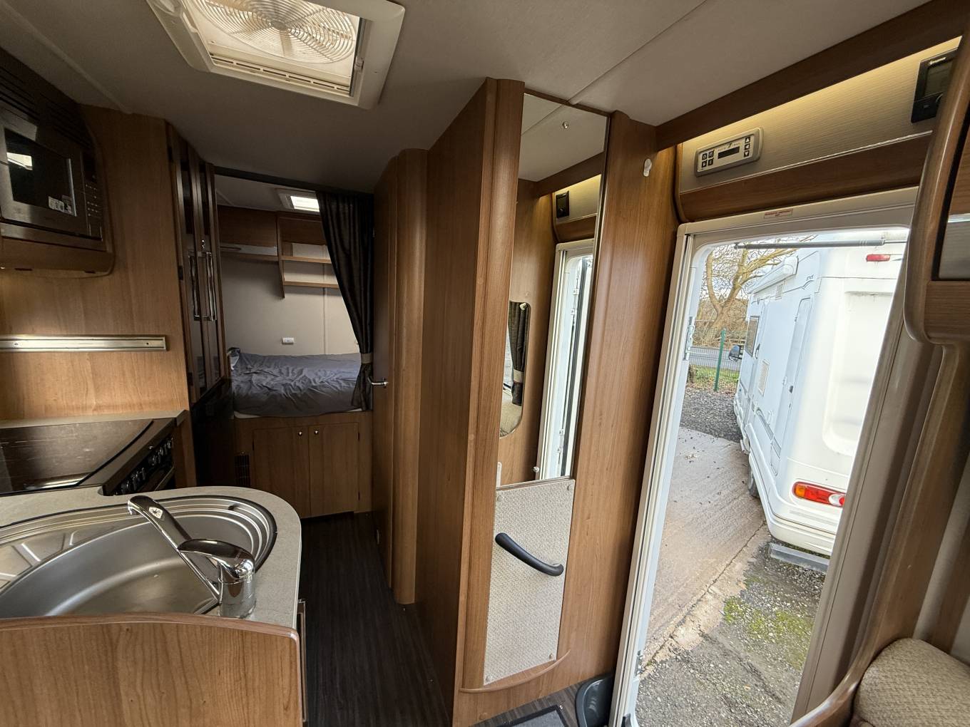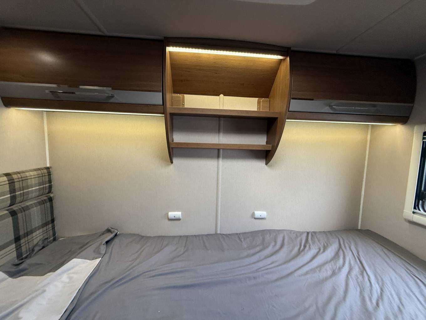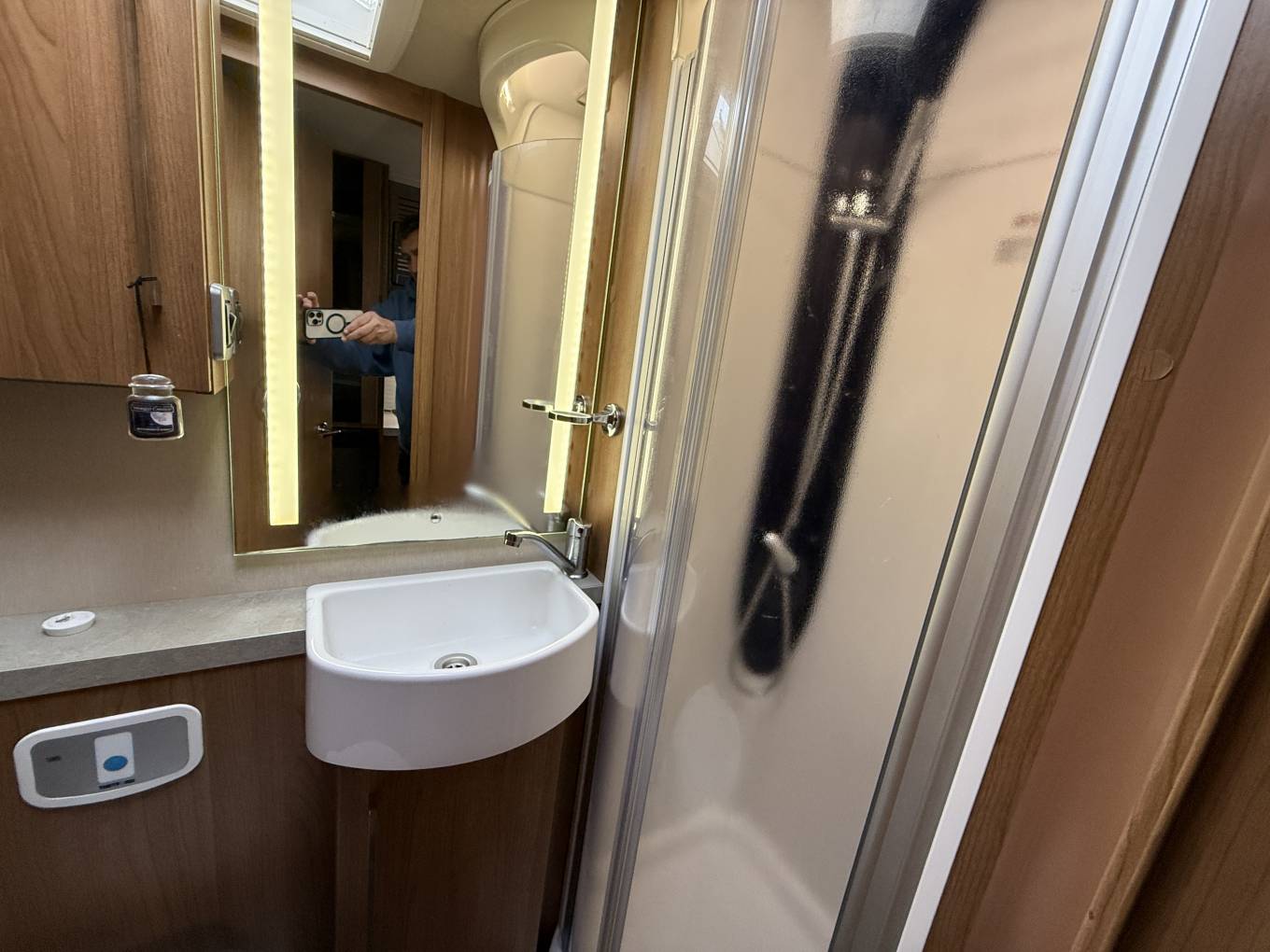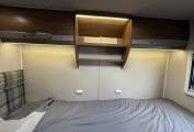 At the rear of this motorhome, you have your huge, comfortable transverse bed. The bed sits over a large garage perfect for all your camping gear to be stored out of sight and out of mind. The rear bedroom has TV capability with its aerial point and power sockets. Not only below the bed, but above you will find even more storage in the form of cupboards.