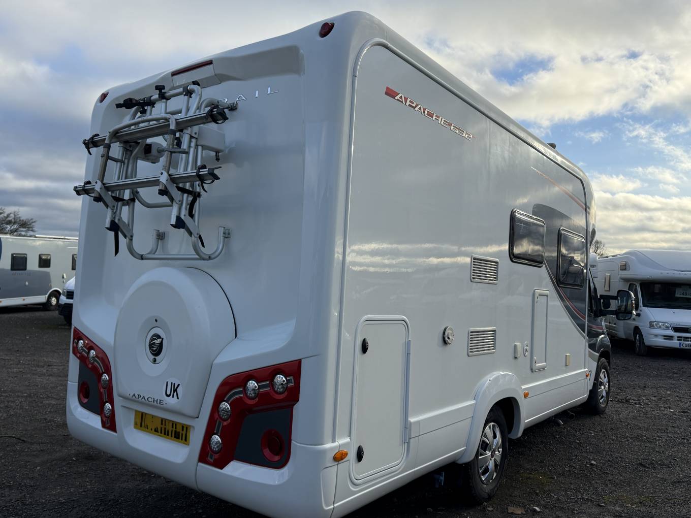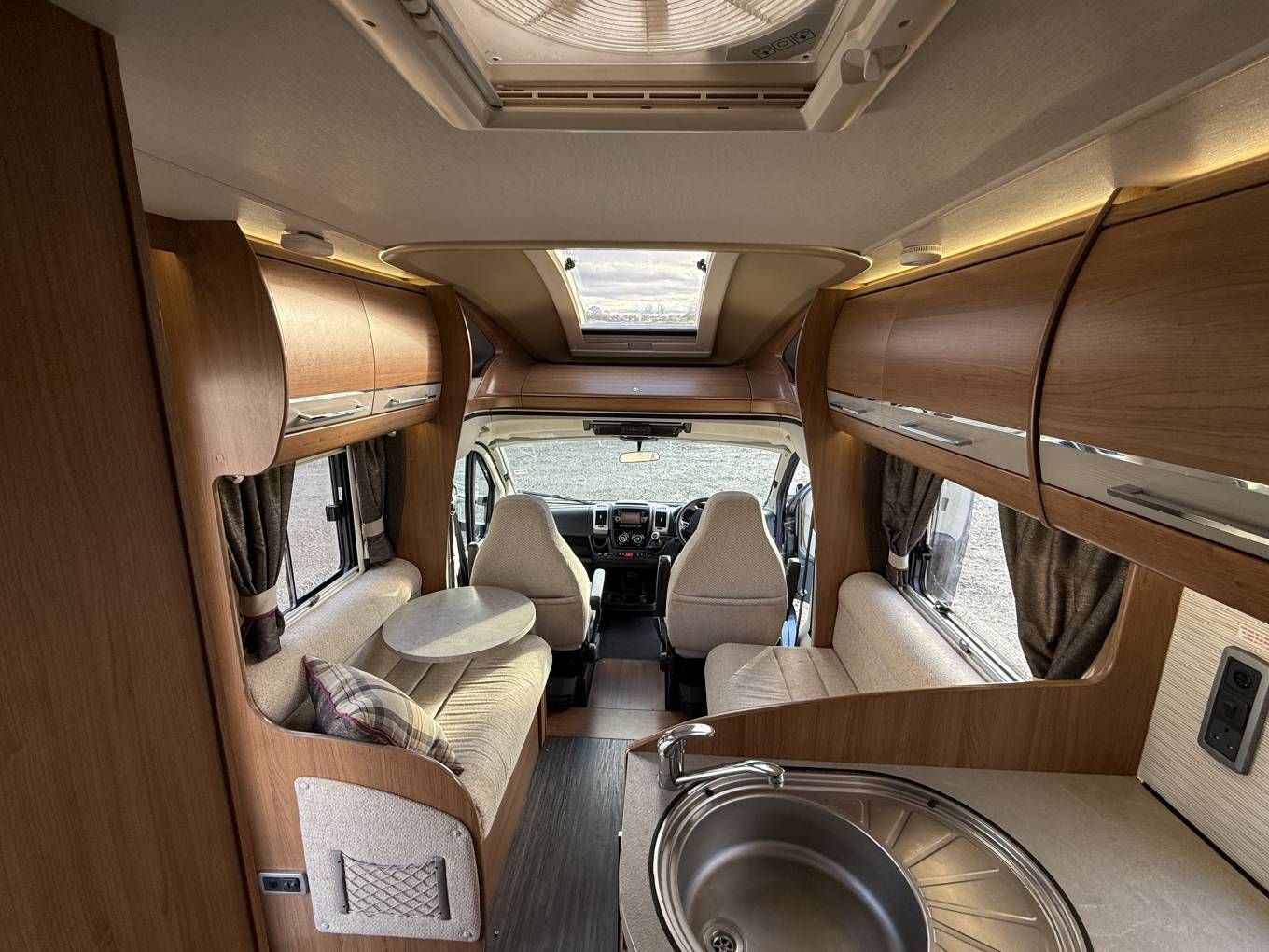 The Auto-trail Apache 632 offers comfort and space for up to 4 people to enjoy. The Apache 632 is based on the Fiat chassis with a 2287cc manual 6 speed diesel engine. It has a gross weight of 3500KG so can be driven on a standard UK licence and it measures in at 7.36m. The cabin benefits from air conditioning, cruise control, reversing camera and blinds.