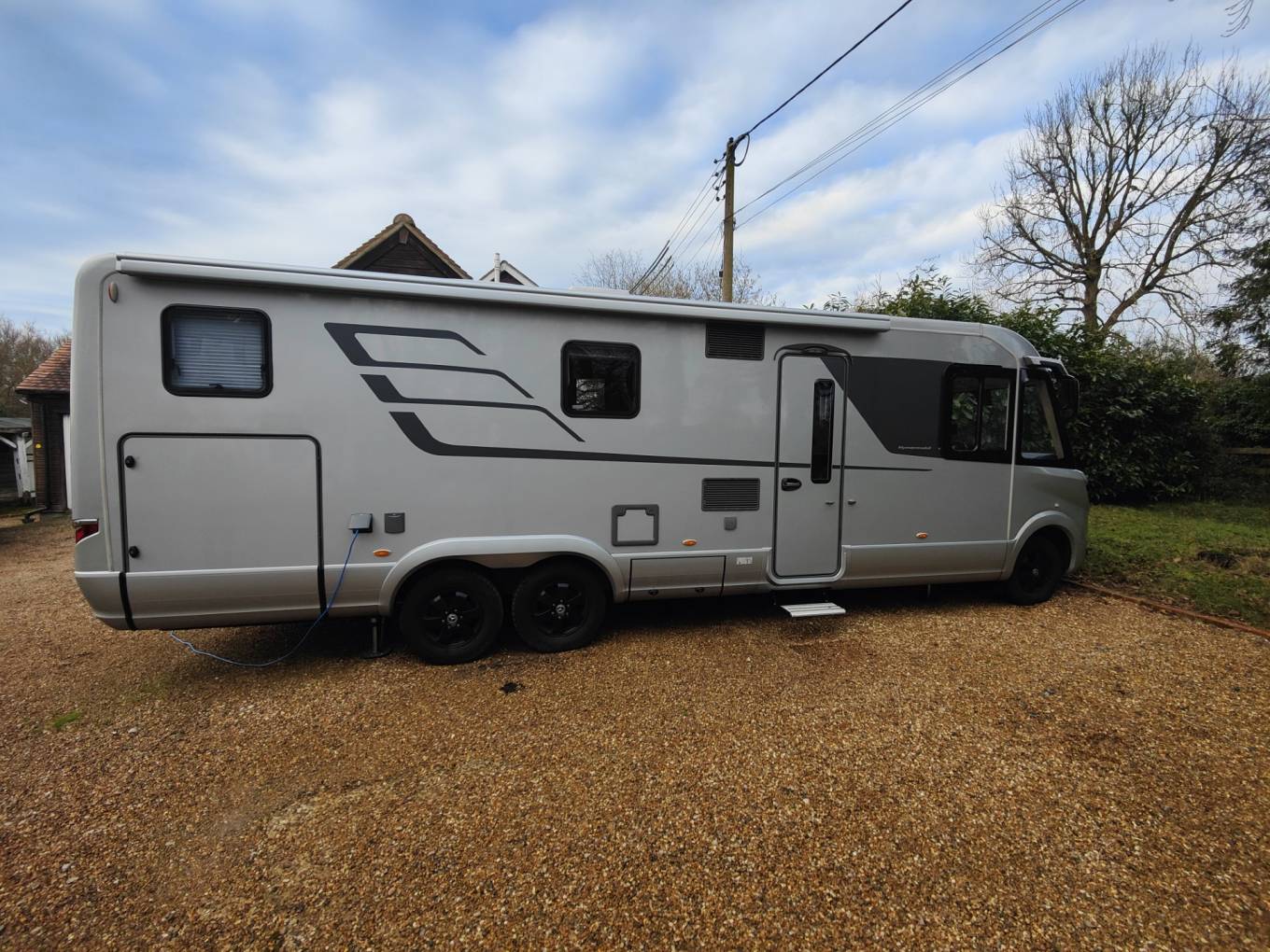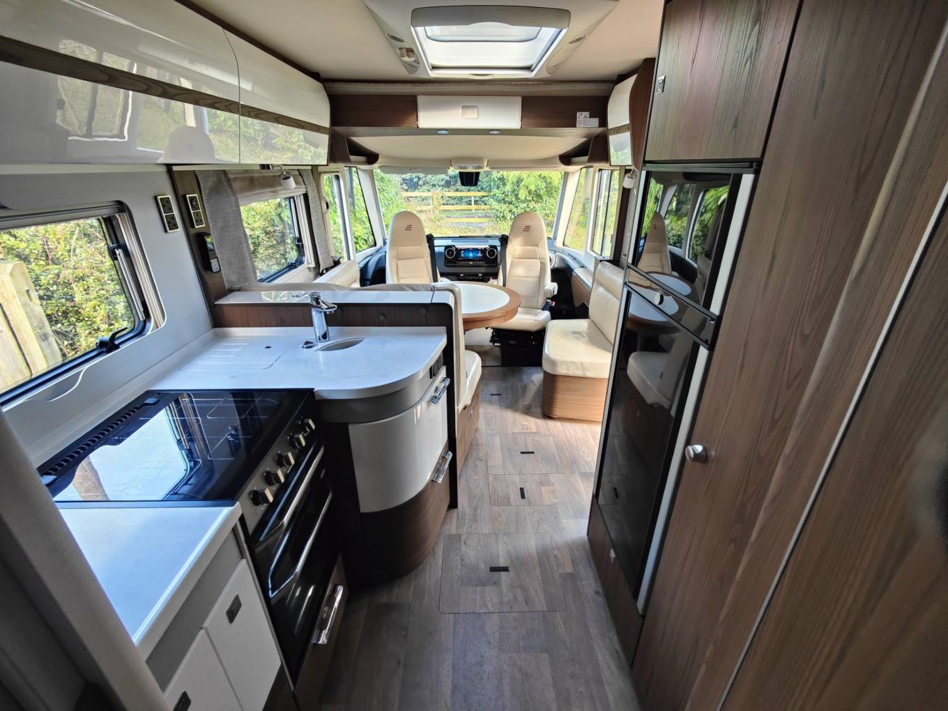 This is an outstanding example of Hymers flagship Masterline i880 model. This near 9.0 metre long A class motorhome features two fixed singles to the rear that easily make an enormous double with a cavernous garage underneath. To the centre is a large washroom with separate shower and a kitchen with everything you could possibly want. With a large drop down double bed to the front with spacious dinette underneath, this luxurious and spacious Hymer will tick all the boxes for even the most discerning buyer. Based on the Mercedes Sprinter cab with an Alko chassis, this 2143cc diesel derivative has the very desirable 9 speed Automatic gearbox and includes a reverse camera, climate control. satnav, multimeadia system and a cab comfort pack. In addition to the usual features, this example includes HPC Hydraulic levelling system, gaslo refillable bottles, wifi, habitation aircon, 5.0 metre awning, Alde wet heating system, Arctic pack, living comfort pack, rear heat exchanger, for passengers, a Sigma cat 1 alarm system and a Meta tracker. 18k miles from new. Recent habcheck and service. Based in Kent and more pictures available.